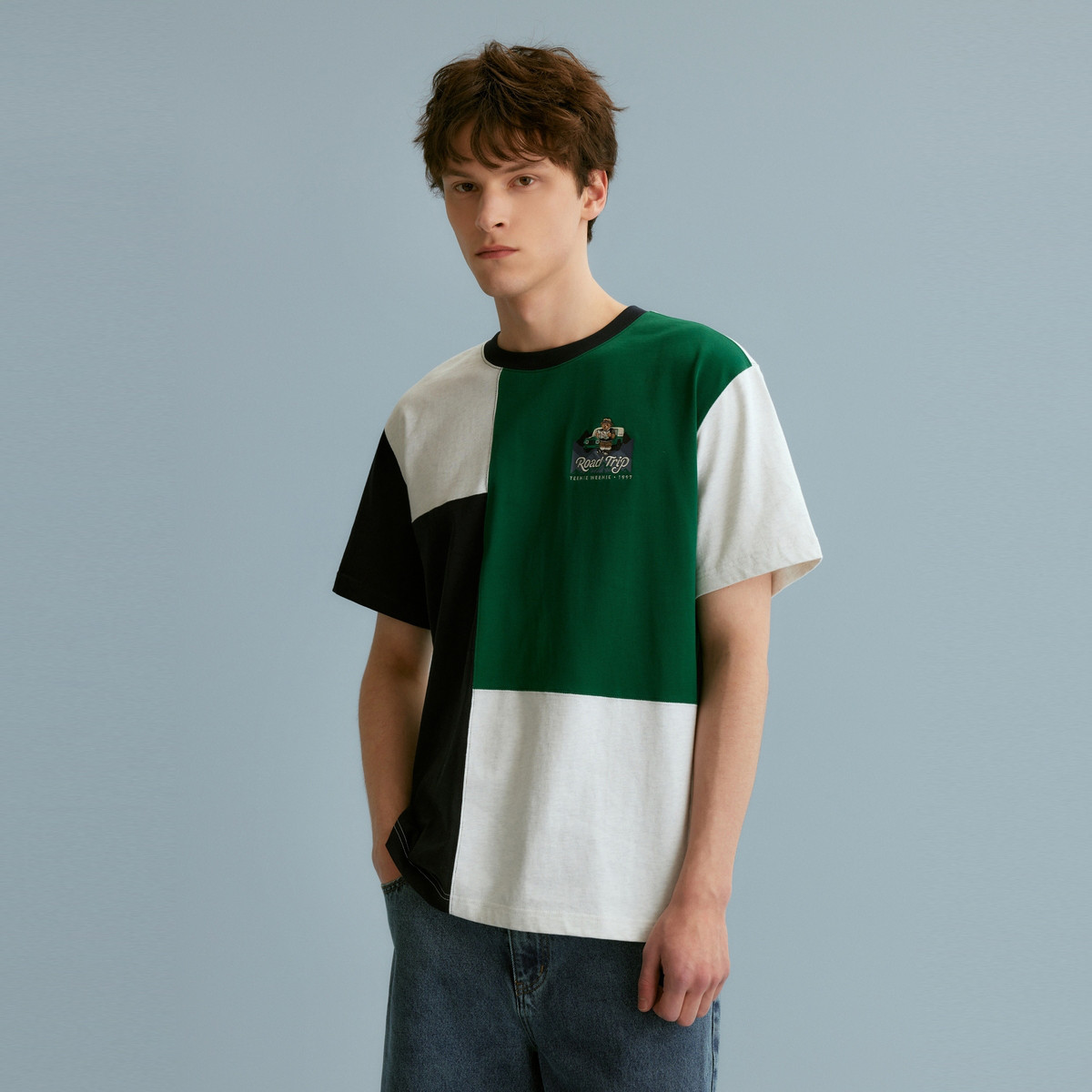 【情侣同款】T恤小熊时尚短袖假两件夏季潮流休闲宽松圆领T恤 754689