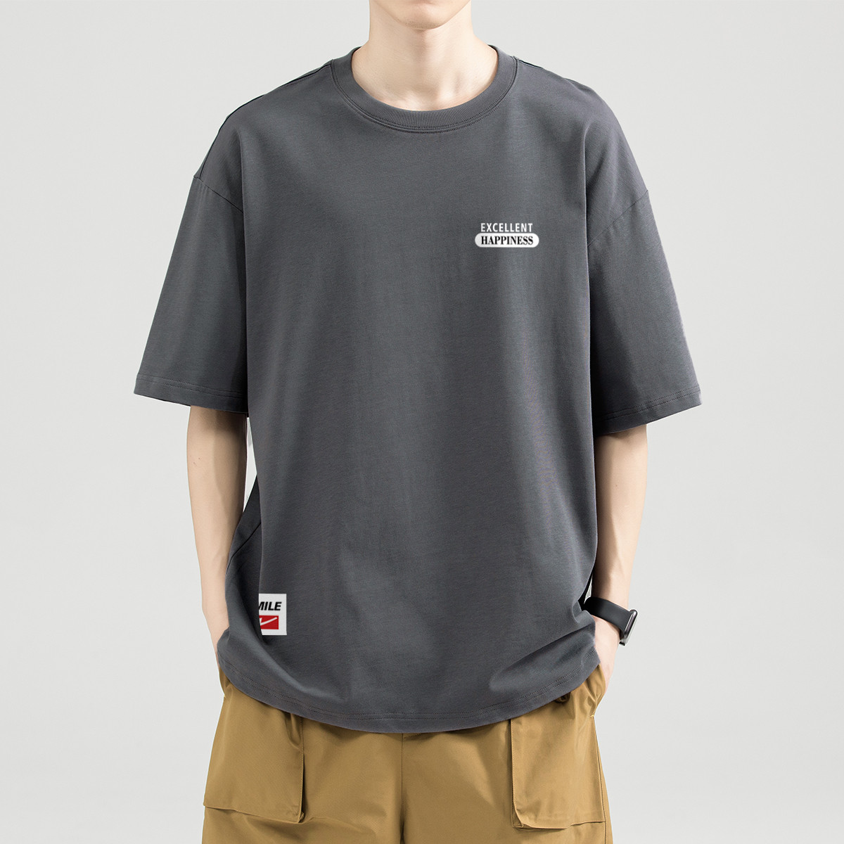 短袖t恤男纯棉宽松五分袖T恤日系潮流半袖男女简约百搭体恤上衣 216467