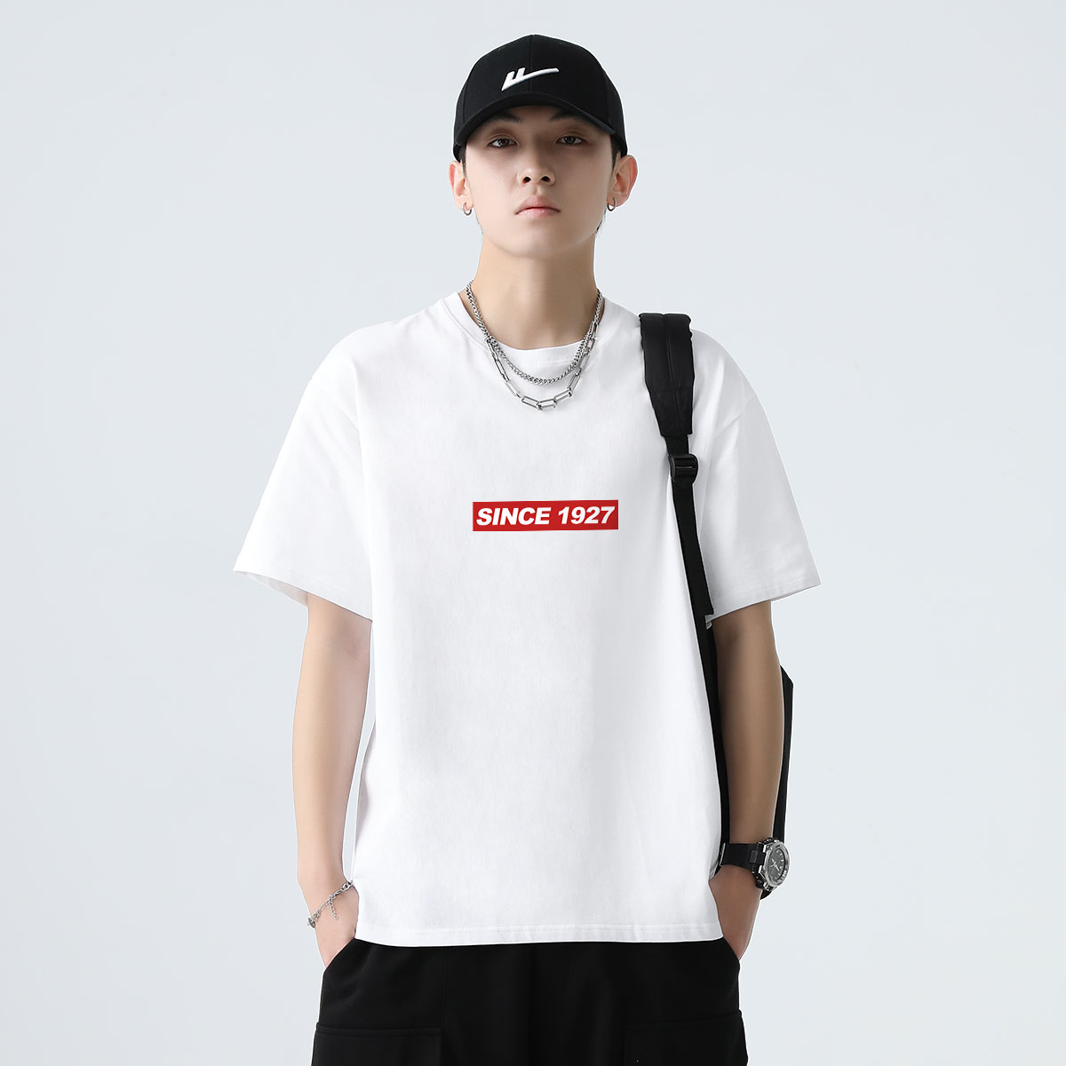 【220克重磅棉】短袖男宽松大码简约潮牌运动上衣重磅纯棉t恤 821331