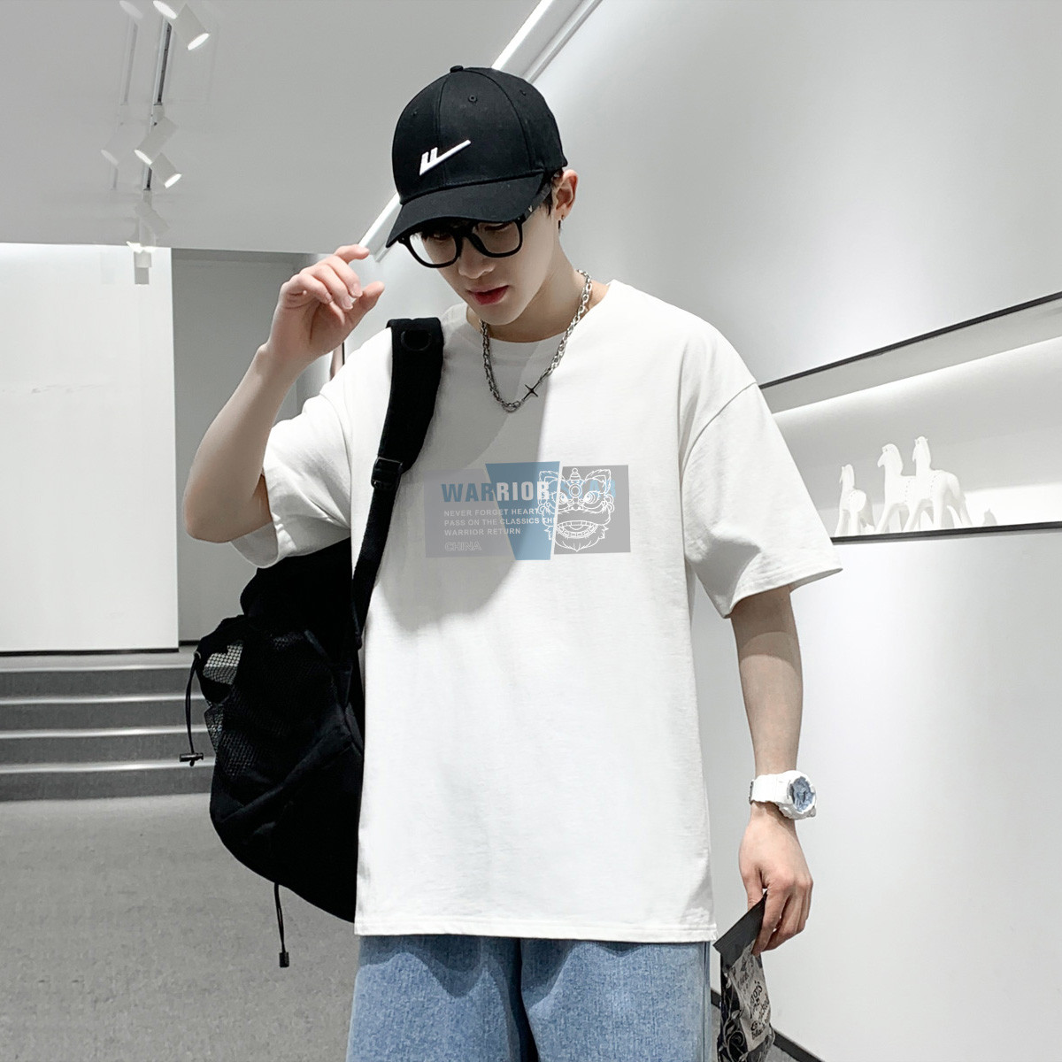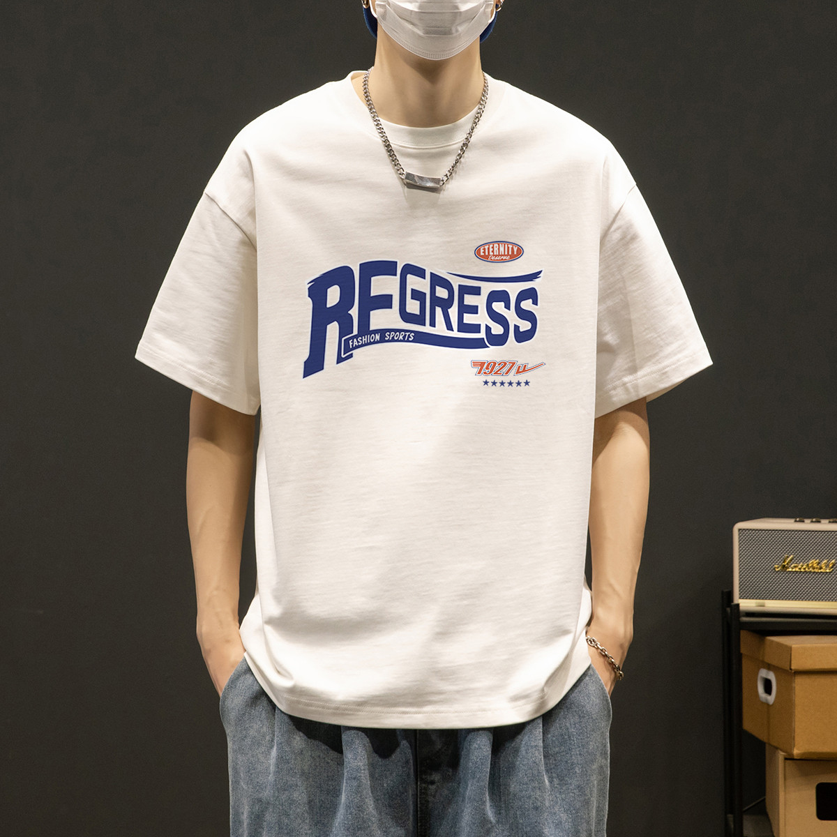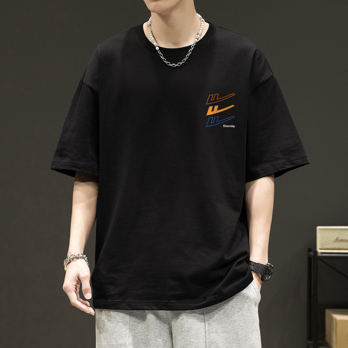 【国潮时尚】夏季百搭潮半截袖t恤男体恤男青少年短袖男式t恤 613843