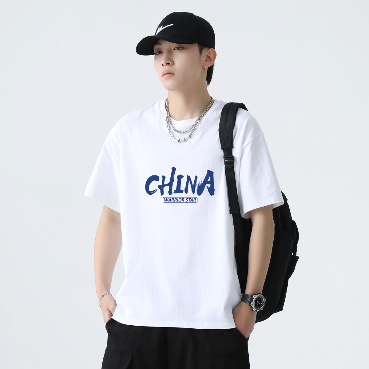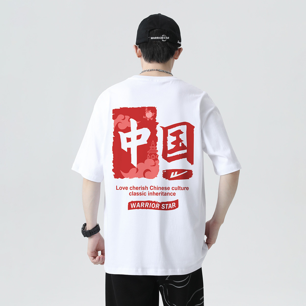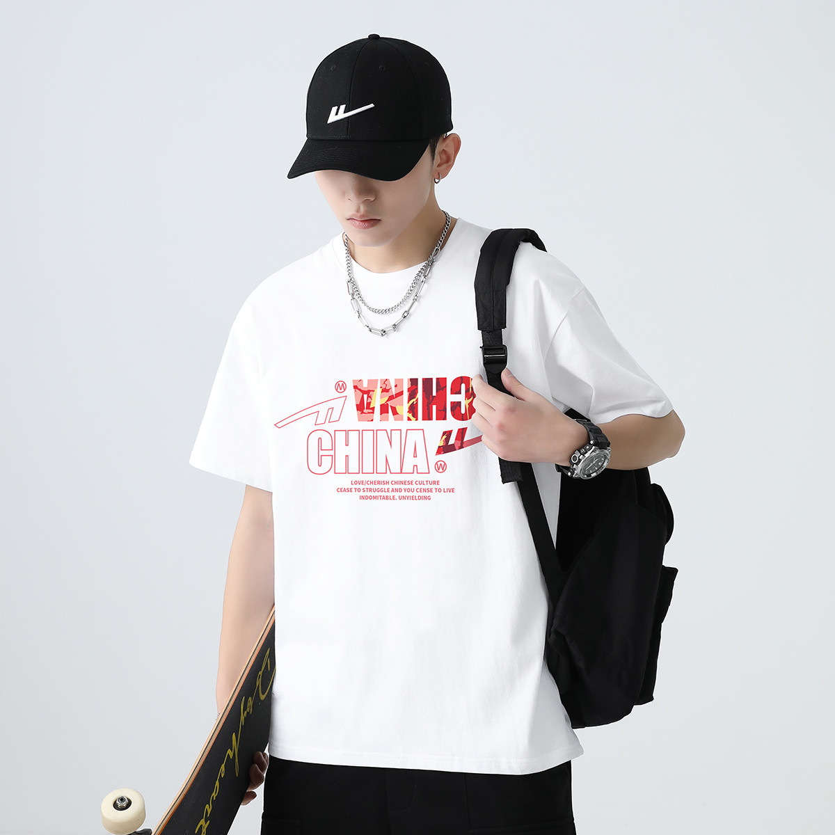 【100%纯棉】国潮复古风夏季宽松潮牌高街帅气男生短袖t恤衫 457555