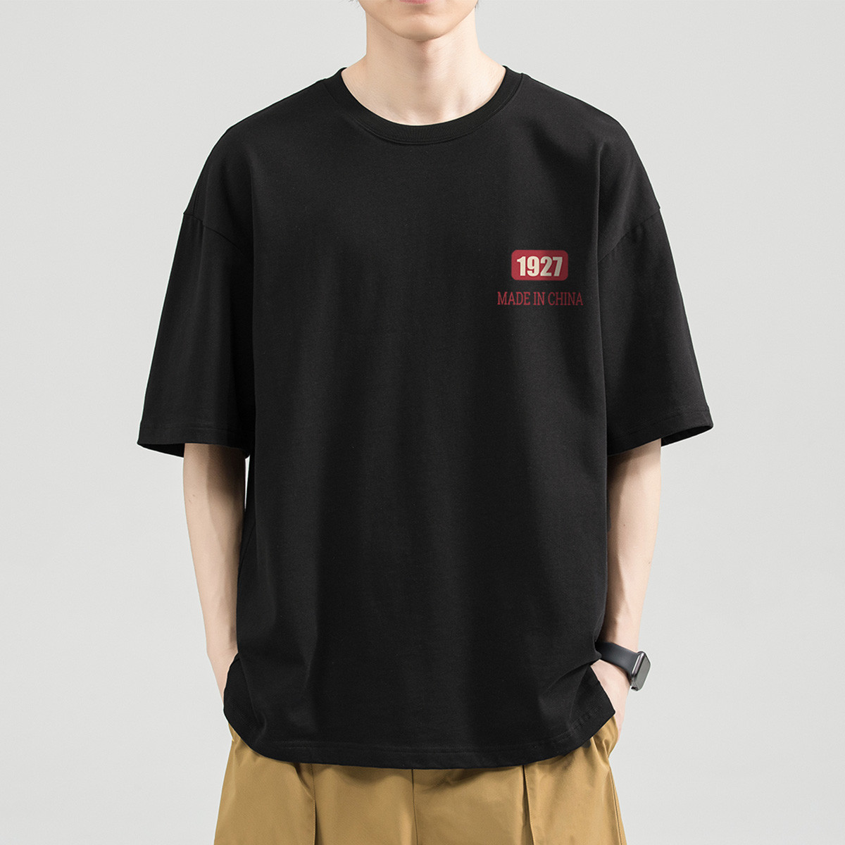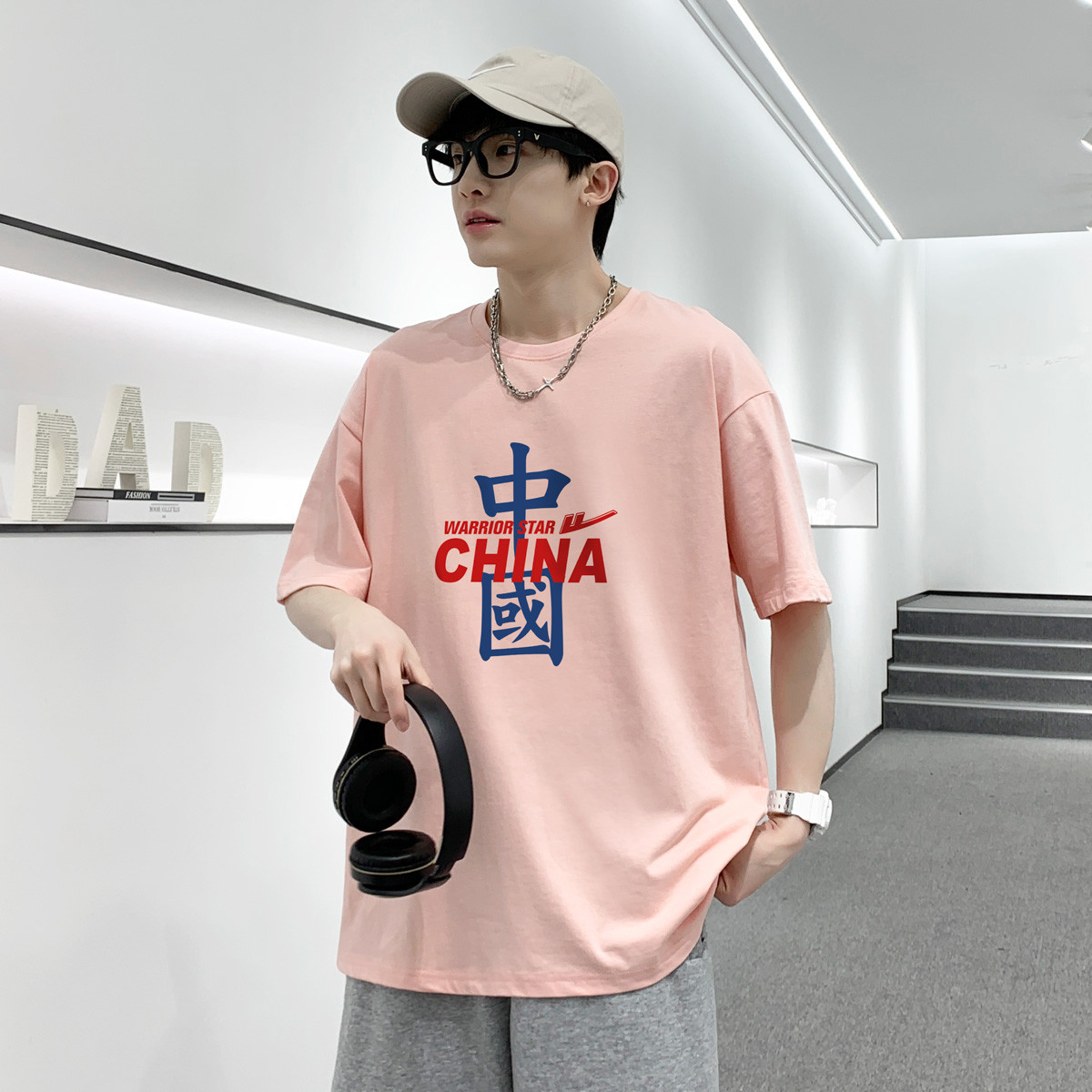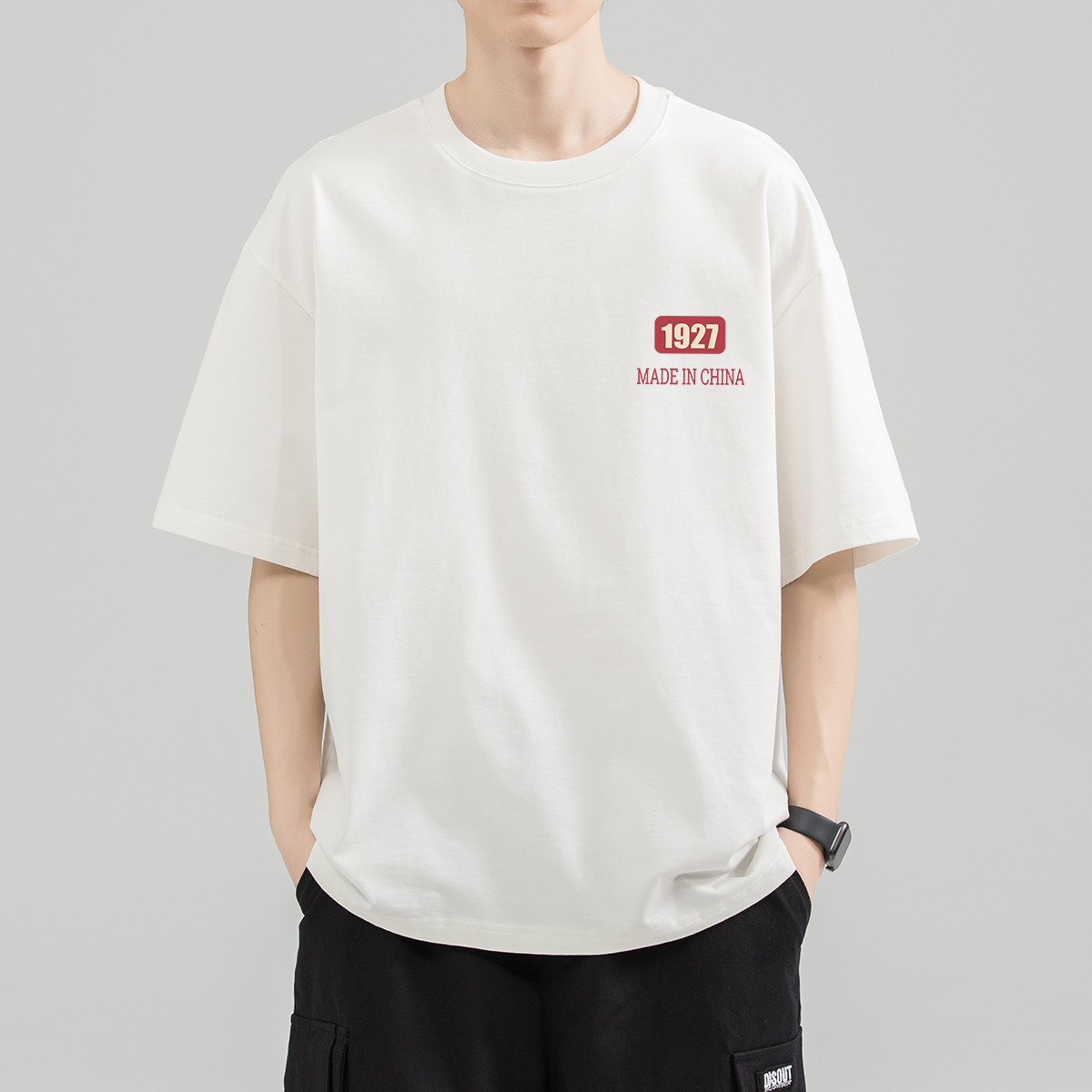 【100%纯棉】国潮复古风夏季宽松潮牌高街帅气男生短袖t恤衫 457555