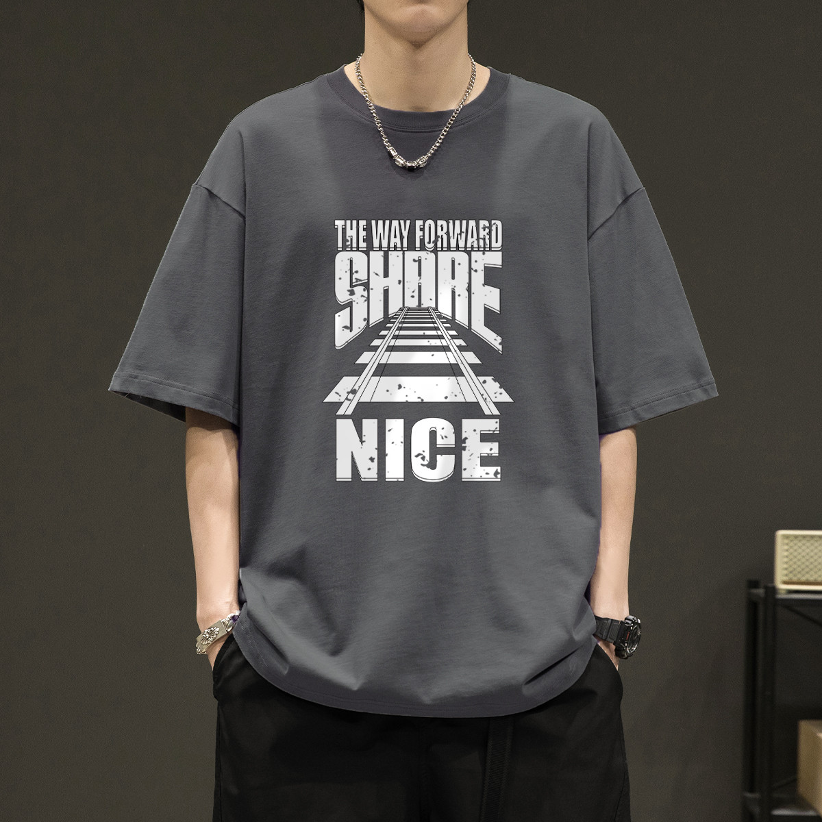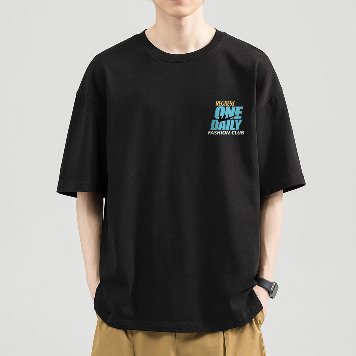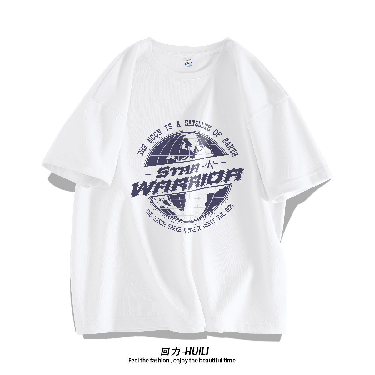 重磅T恤男宽松圆领纯棉短袖创意字母款情侣T恤简约运动上衣 517651