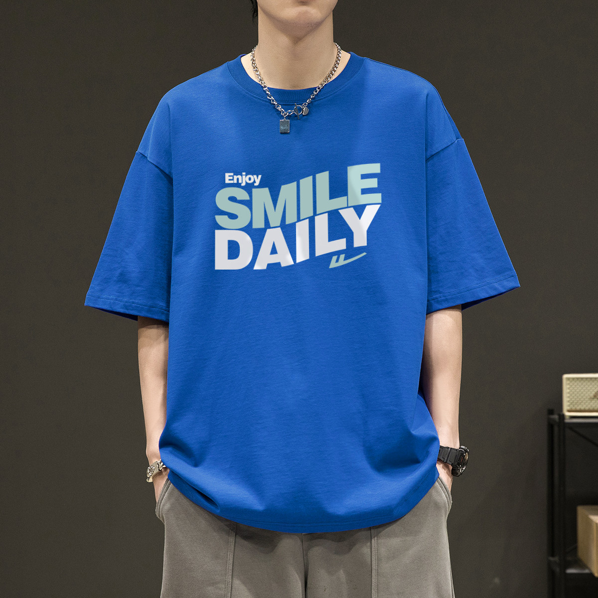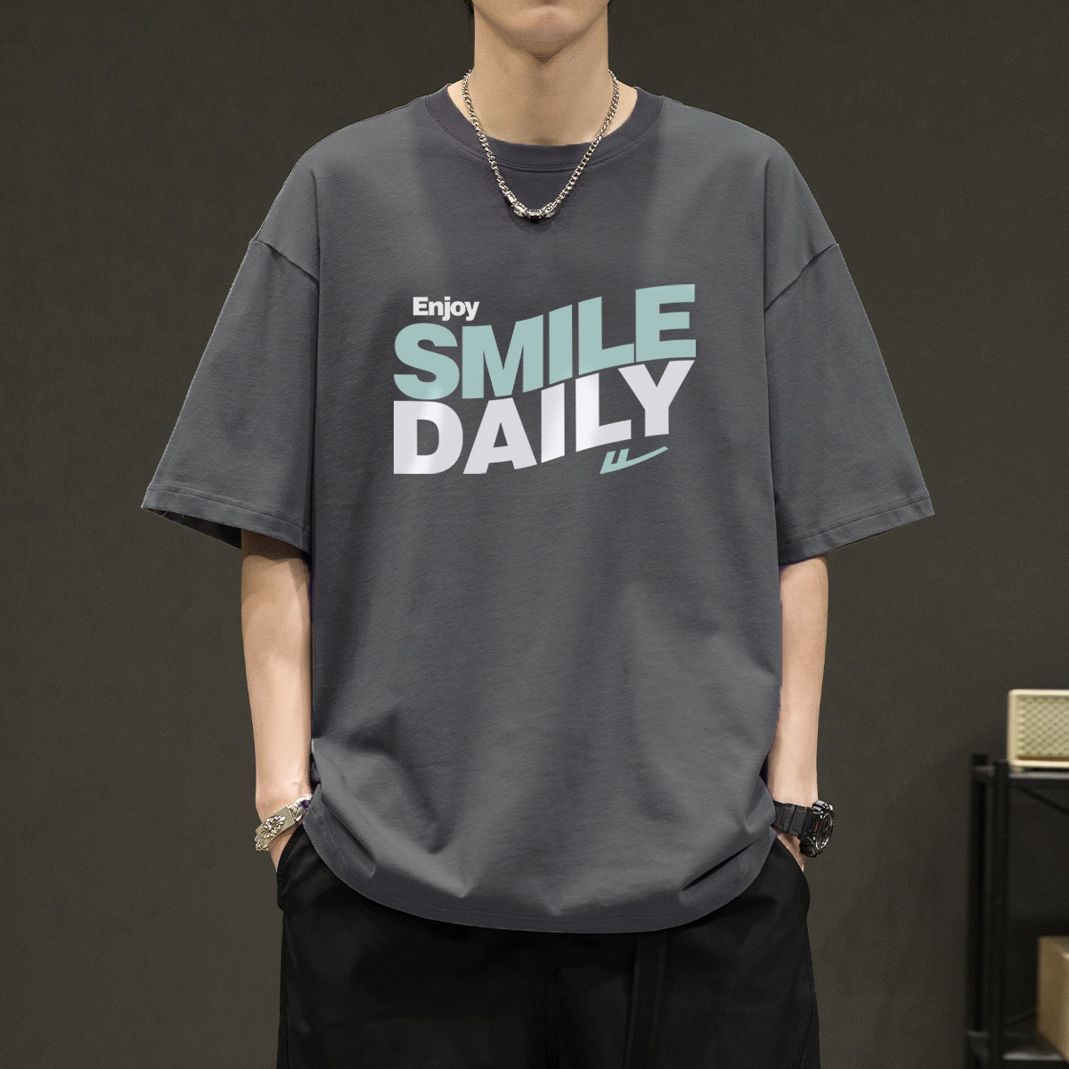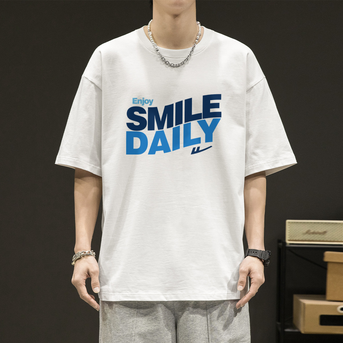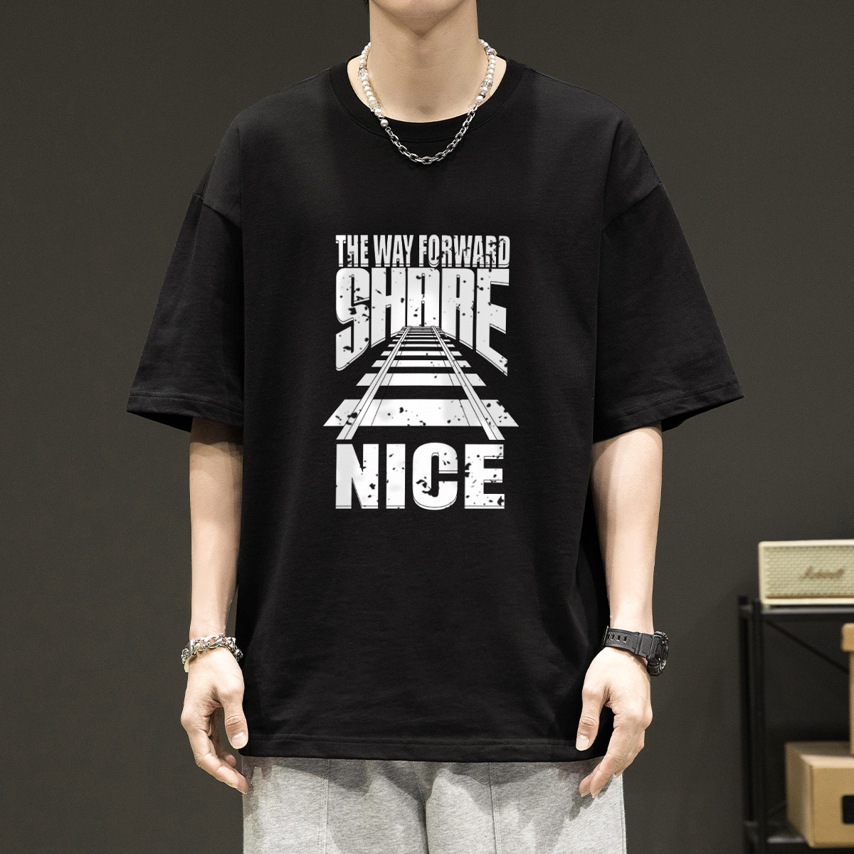 重磅T恤男宽松圆领纯棉短袖创意字母款情侣T恤简约运动上衣 517651