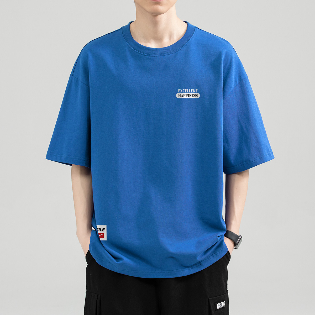 夏季休闲短袖男宽松五分袖T恤纯棉运动半袖男士简约百搭体恤上衣 489747