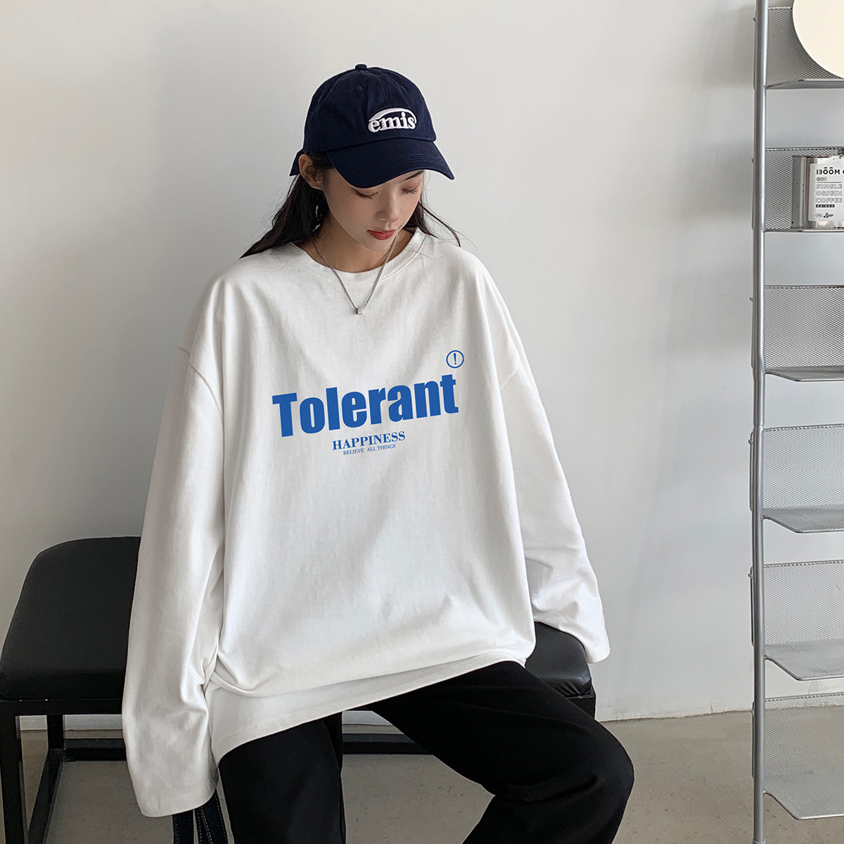 长袖t恤春秋季大码宽松打底衫男女叠穿内搭韩版休闲情侣体恤上衣 605651