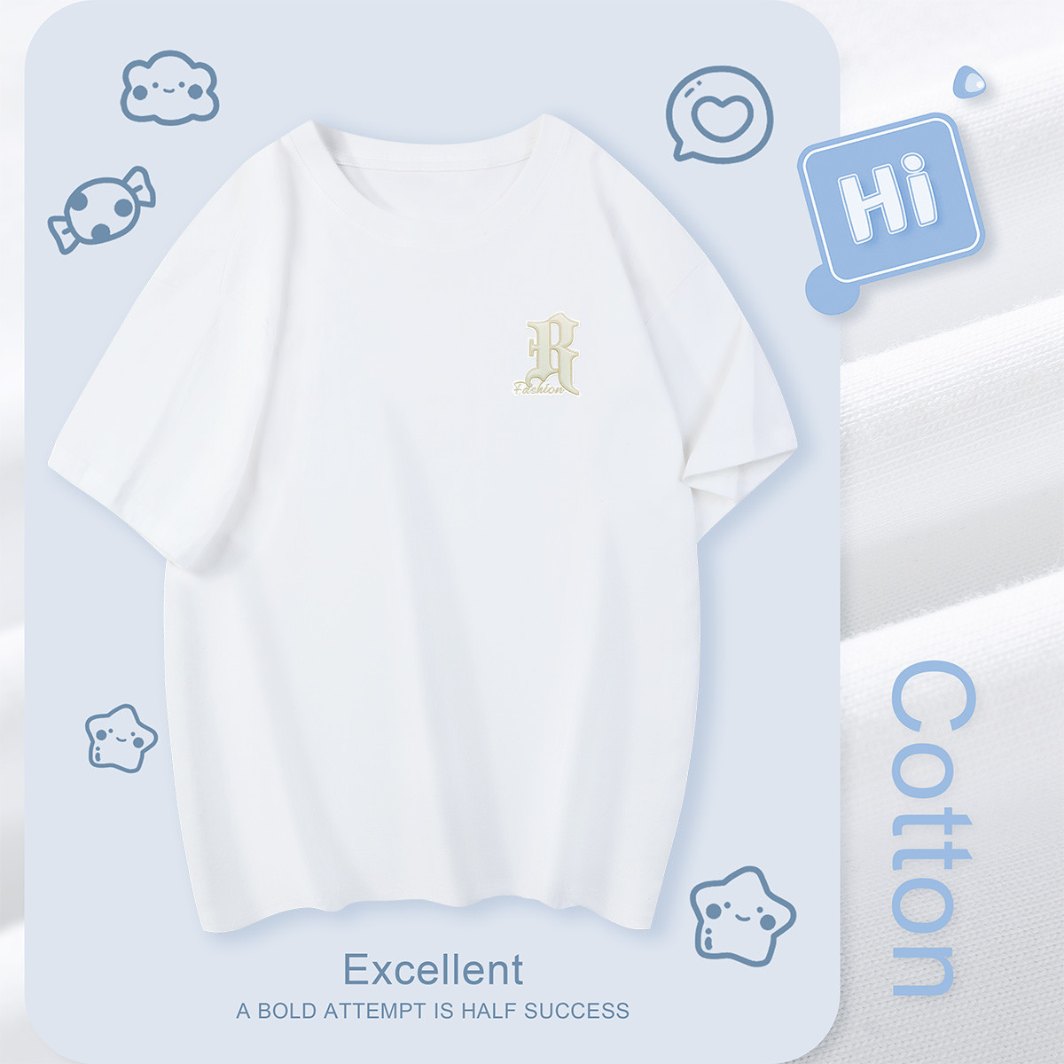 【女装】纯棉短袖t恤女士T恤宽松透气夏季薄款半袖纯色女式上衣 489619