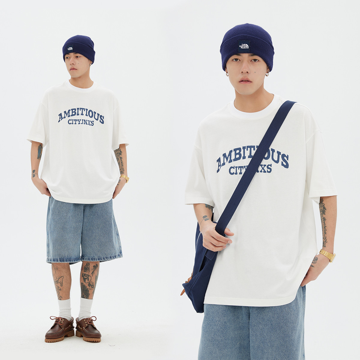 JNXS/江南先生日系复古LOGO印花短袖T恤男女夏季宽松情侣半袖tee 128209