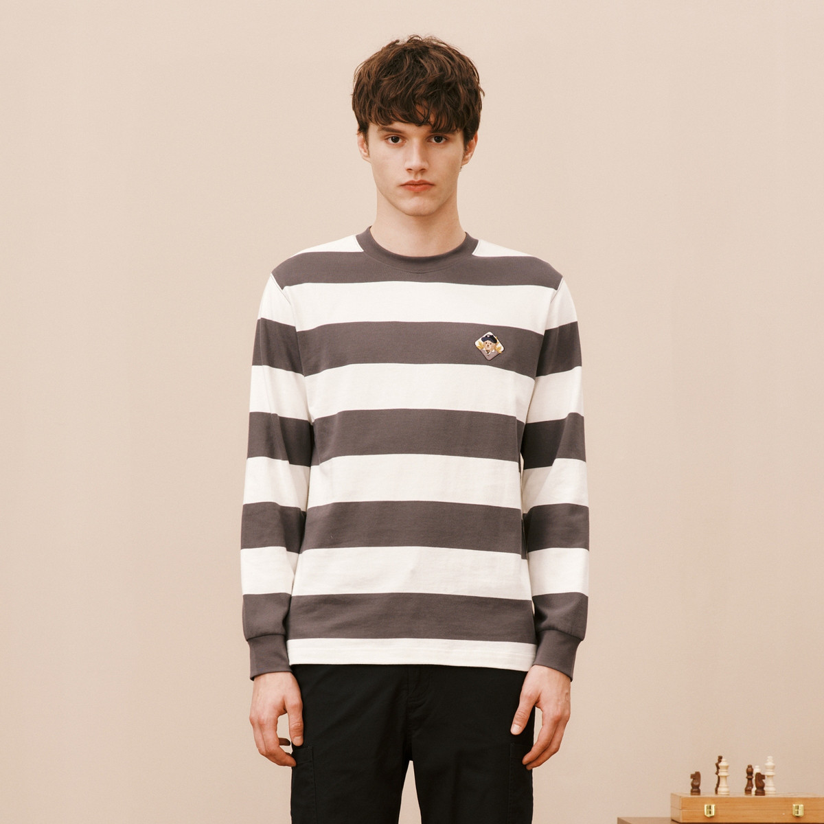 小熊男装条纹T恤复古学院风长袖春季情侣款打底上衣 327169