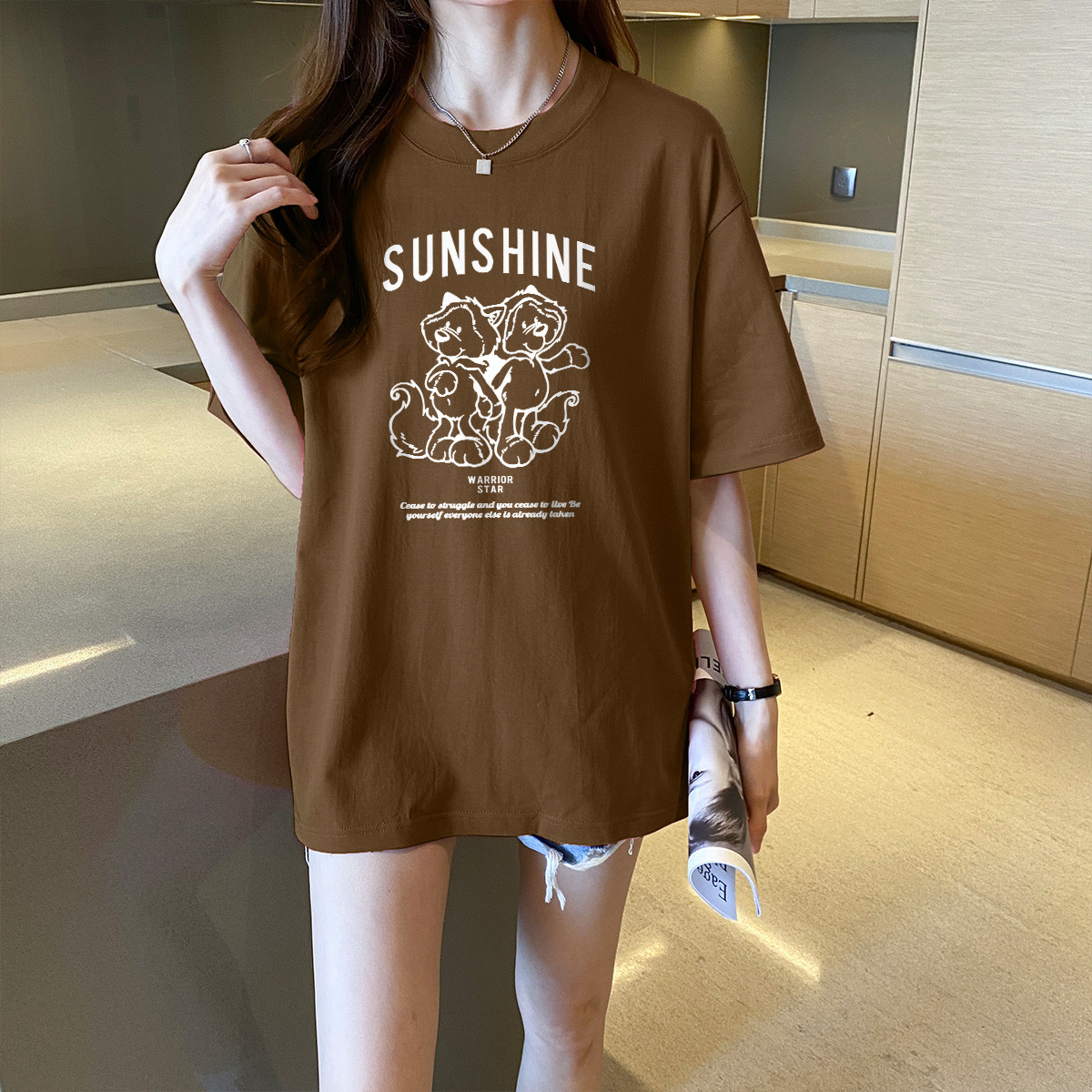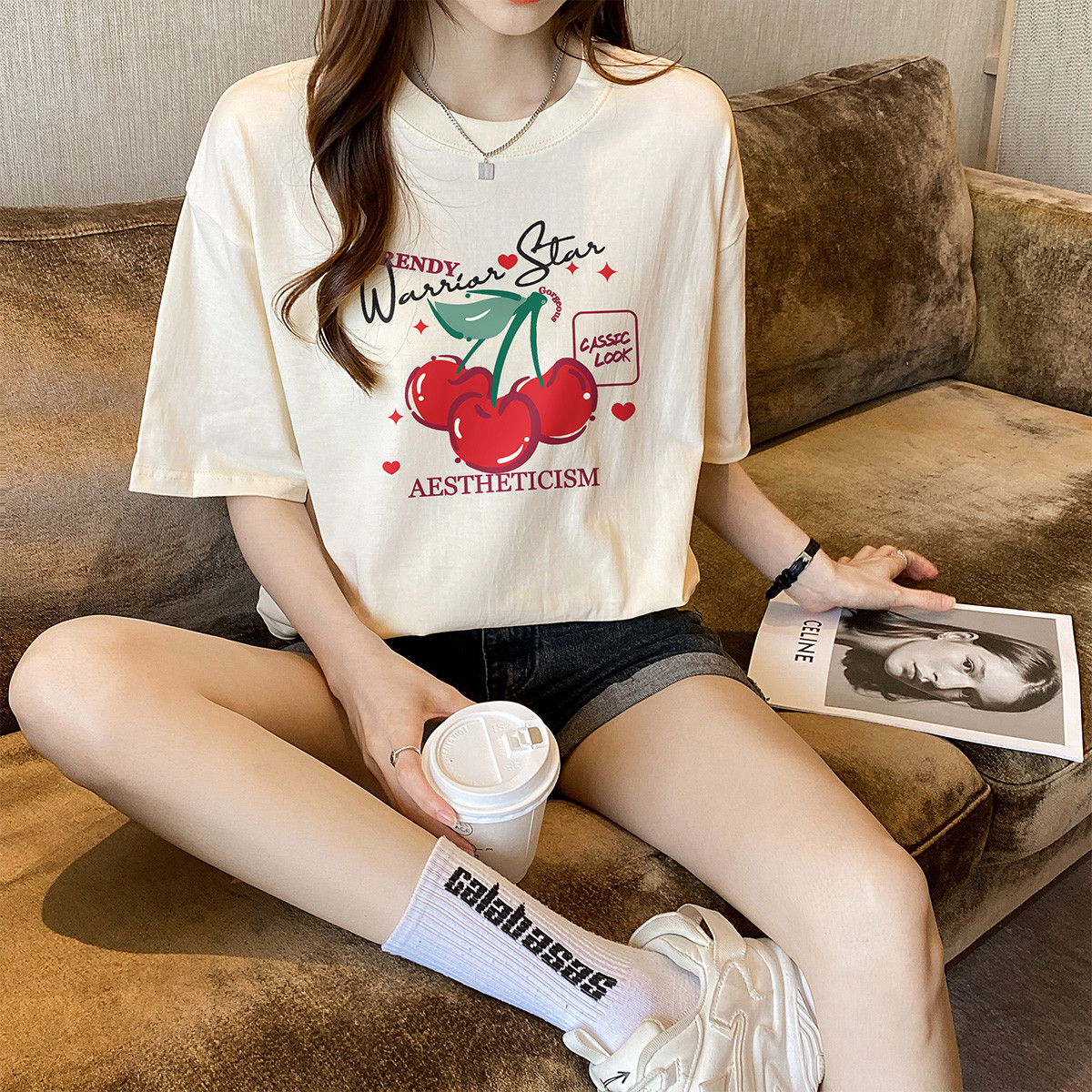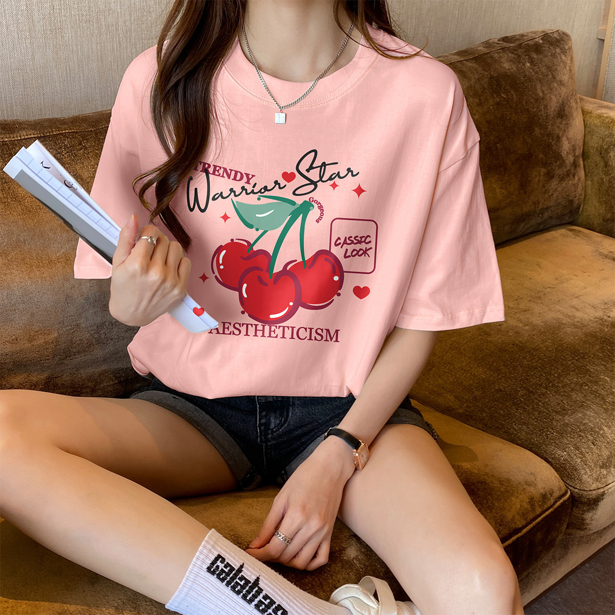 夏季纯棉宽松短袖T恤女式时尚圆领韩版夏装印花半袖体恤上衣 581587