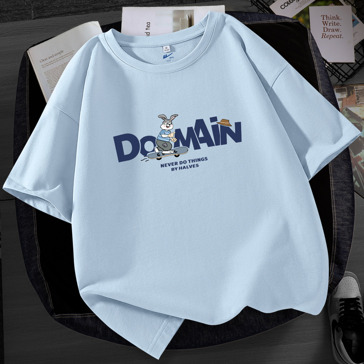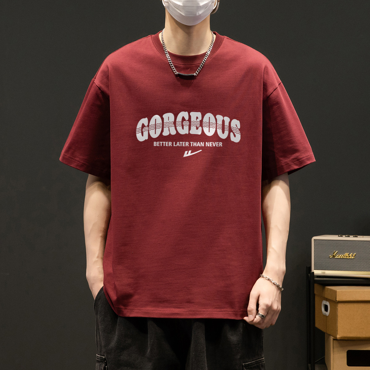 短袖T恤男士夏季薄款潮牌潮流宽松休闲情侣纯棉五分半袖圆领体恤 042643