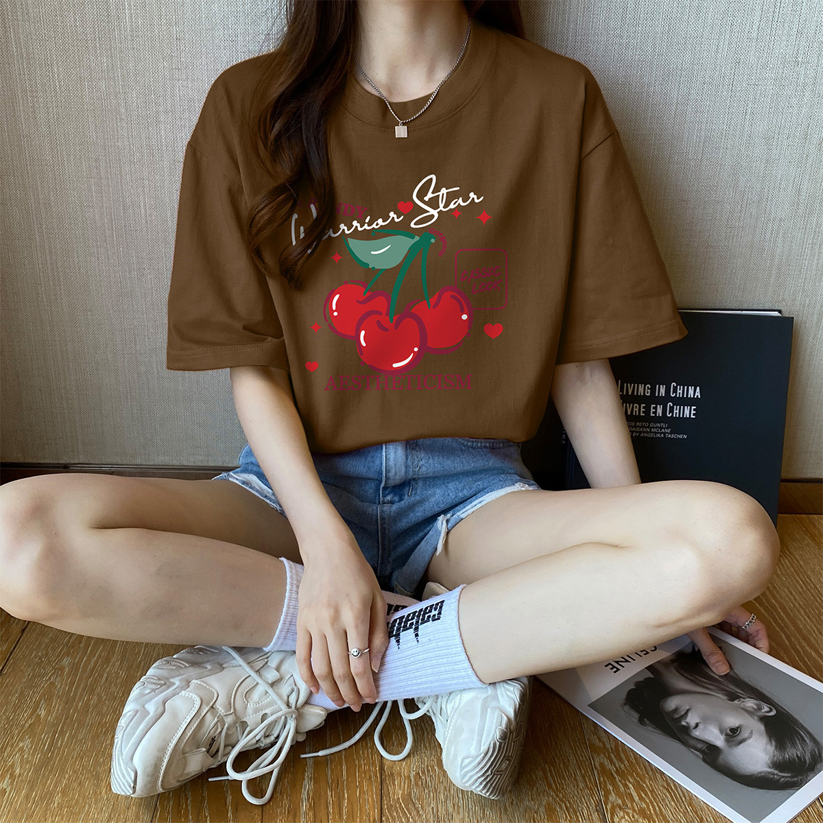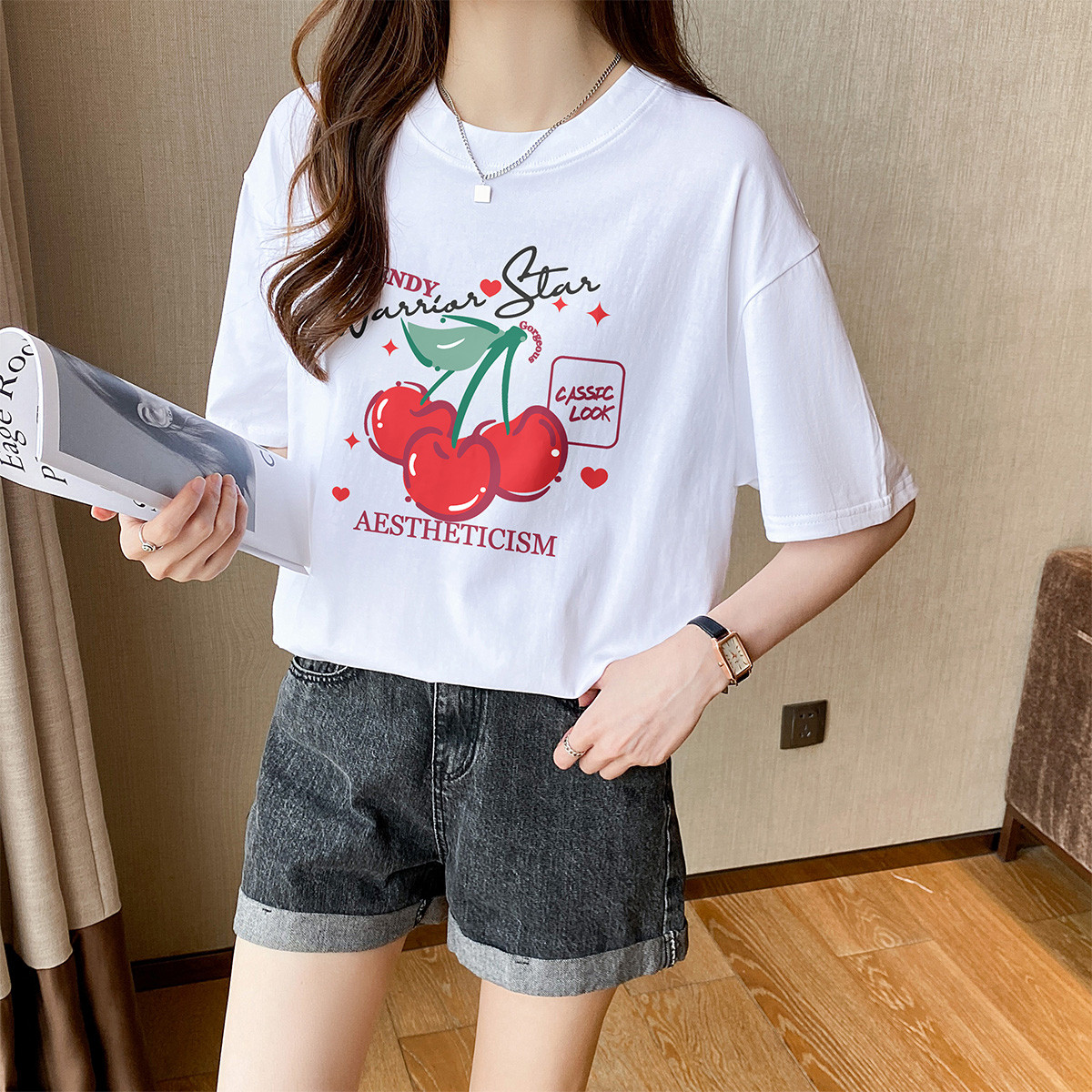 夏季纯棉宽松短袖T恤女式时尚圆领韩版夏装印花半袖体恤上衣 764307
