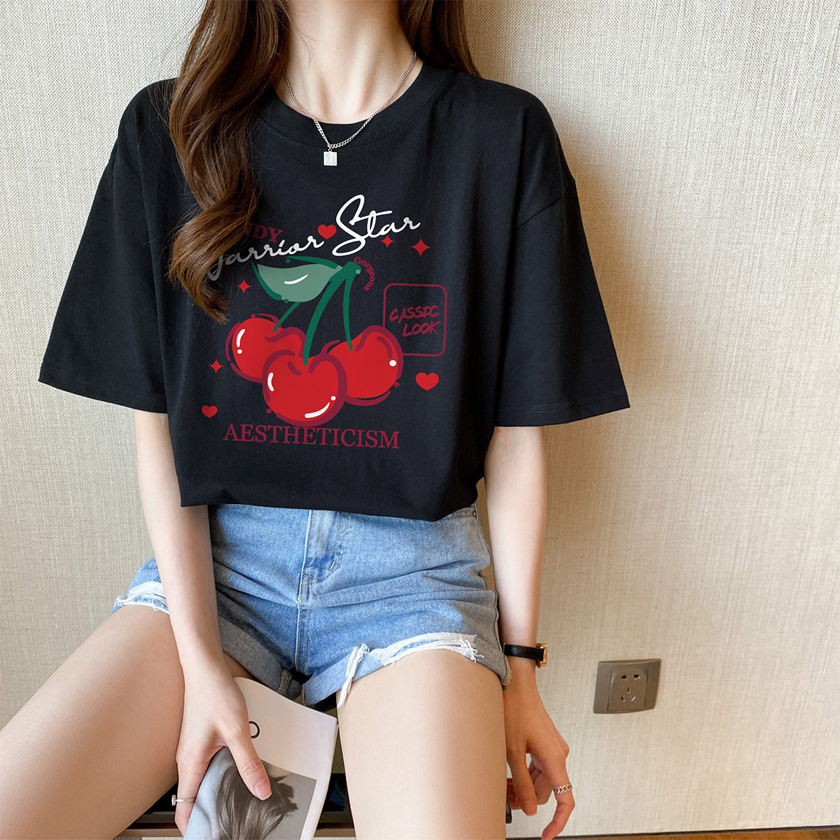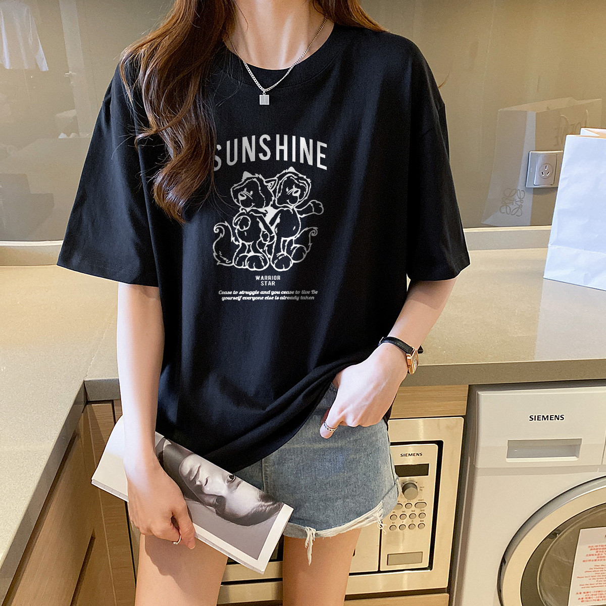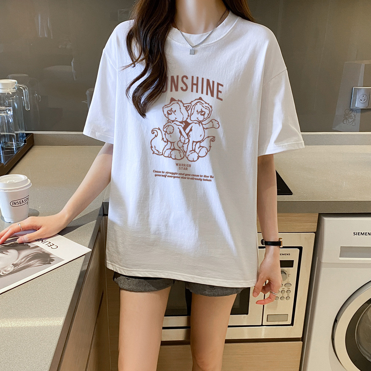 夏季纯棉宽松短袖T恤女式时尚圆领韩版夏装印花半袖体恤上衣 347219