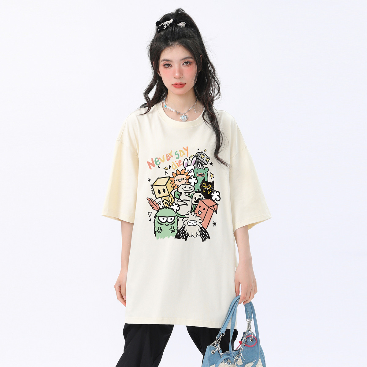 【女装】趣味涂鸦短袖t恤女夏季宽松显瘦百搭大码休闲潮流上衣 558419