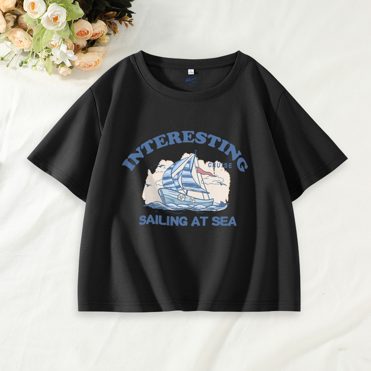 【女装】夏季短款纯棉运动女式T恤短款露脐显瘦上衣小众 143187