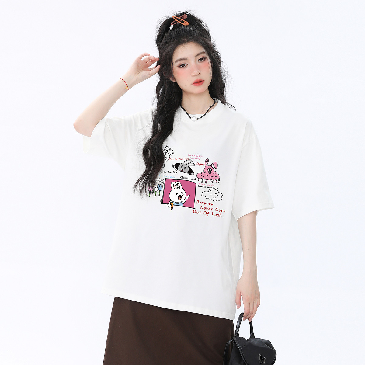 【女装】可爱印花休闲短袖T恤男女2025夏季纯棉宽松潮牌上衣 293523