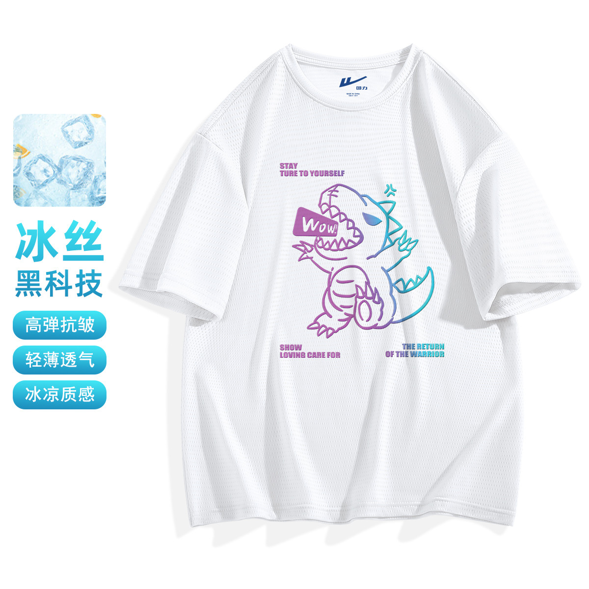 冰丝短袖t恤男夏季薄款透气网眼半袖体恤男式运动宽松大码上衣服 067219
