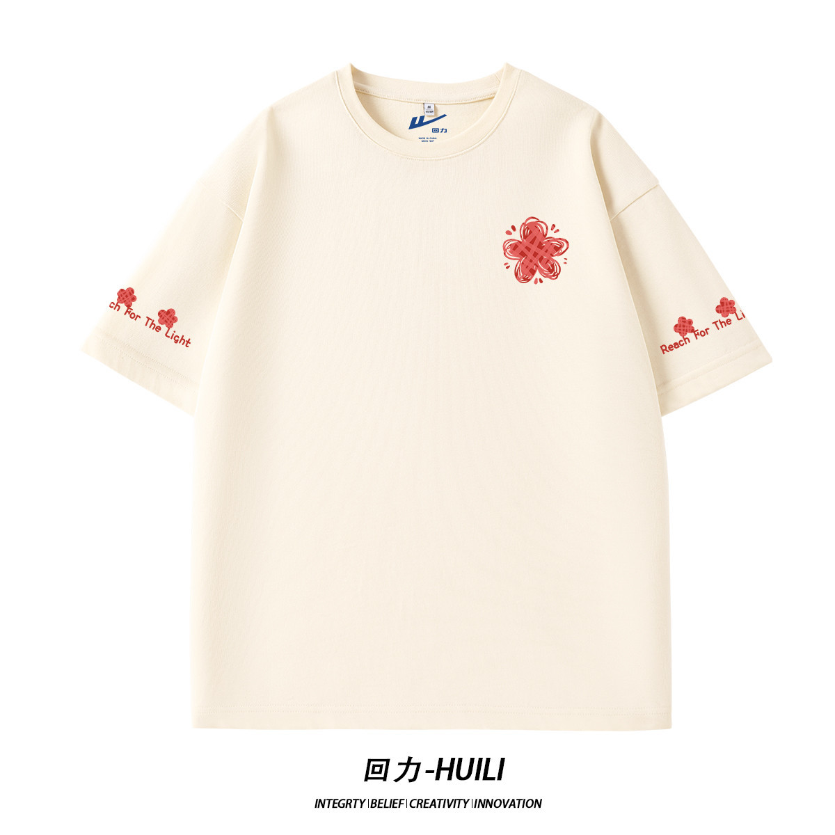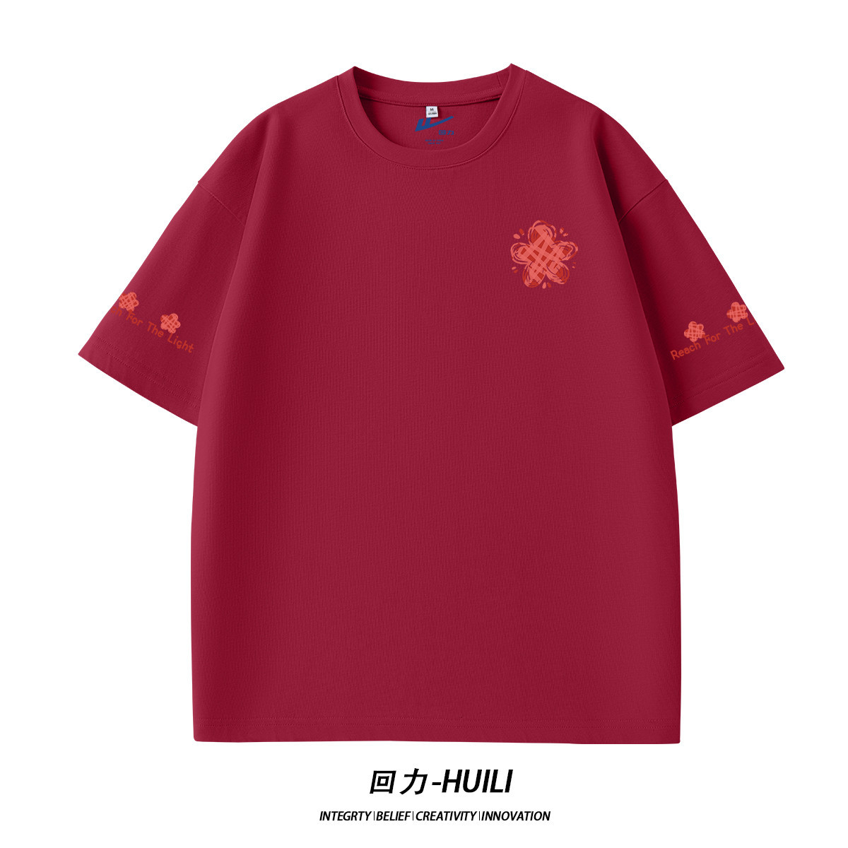 【100%纯棉】国潮复古风夏季宽松潮牌高街帅气男生短袖t恤衫 457555