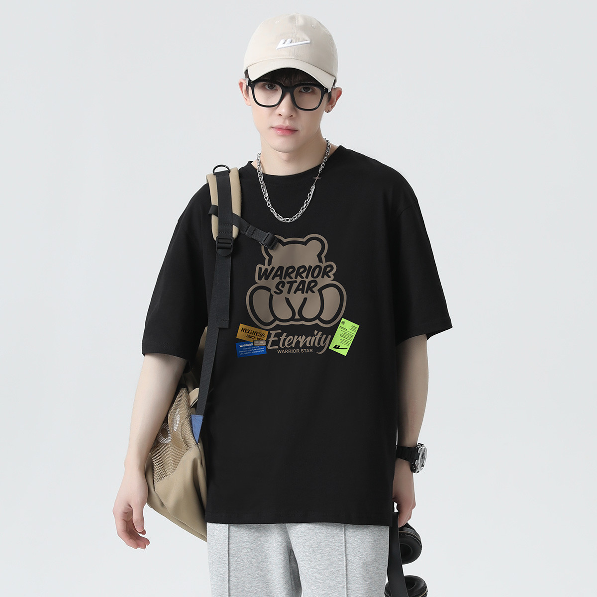 短袖男夏上衣潮流小熊印花纯棉舒适情侣时尚百搭男式t恤潮打底衫 353683