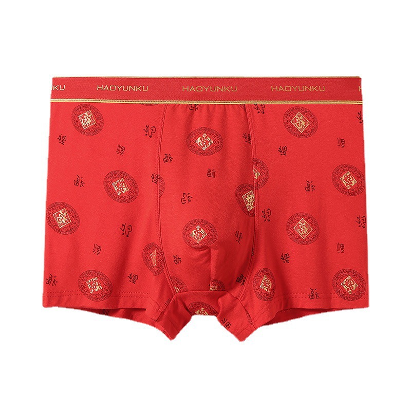 【3条装】万倩莫代尔大红本命年男士平角裤石墨烯抑菌底档喜庆四角内裤男
