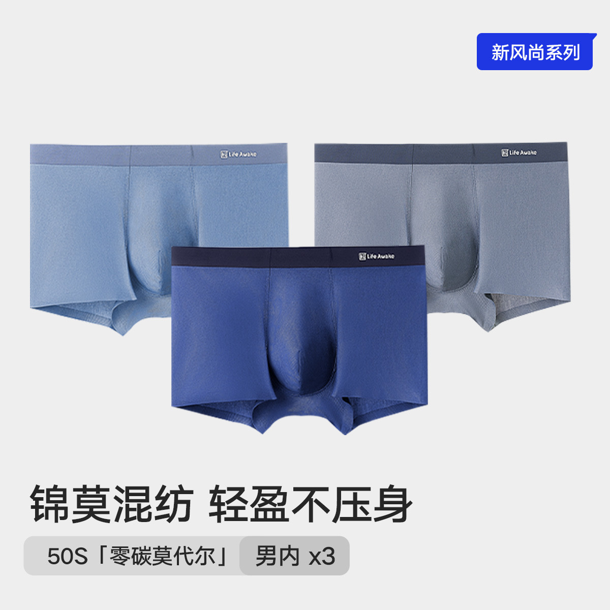 【50S零碳莫代尔】3条装男士内裤无痕平角裤高端轻奢四角短裤 786714