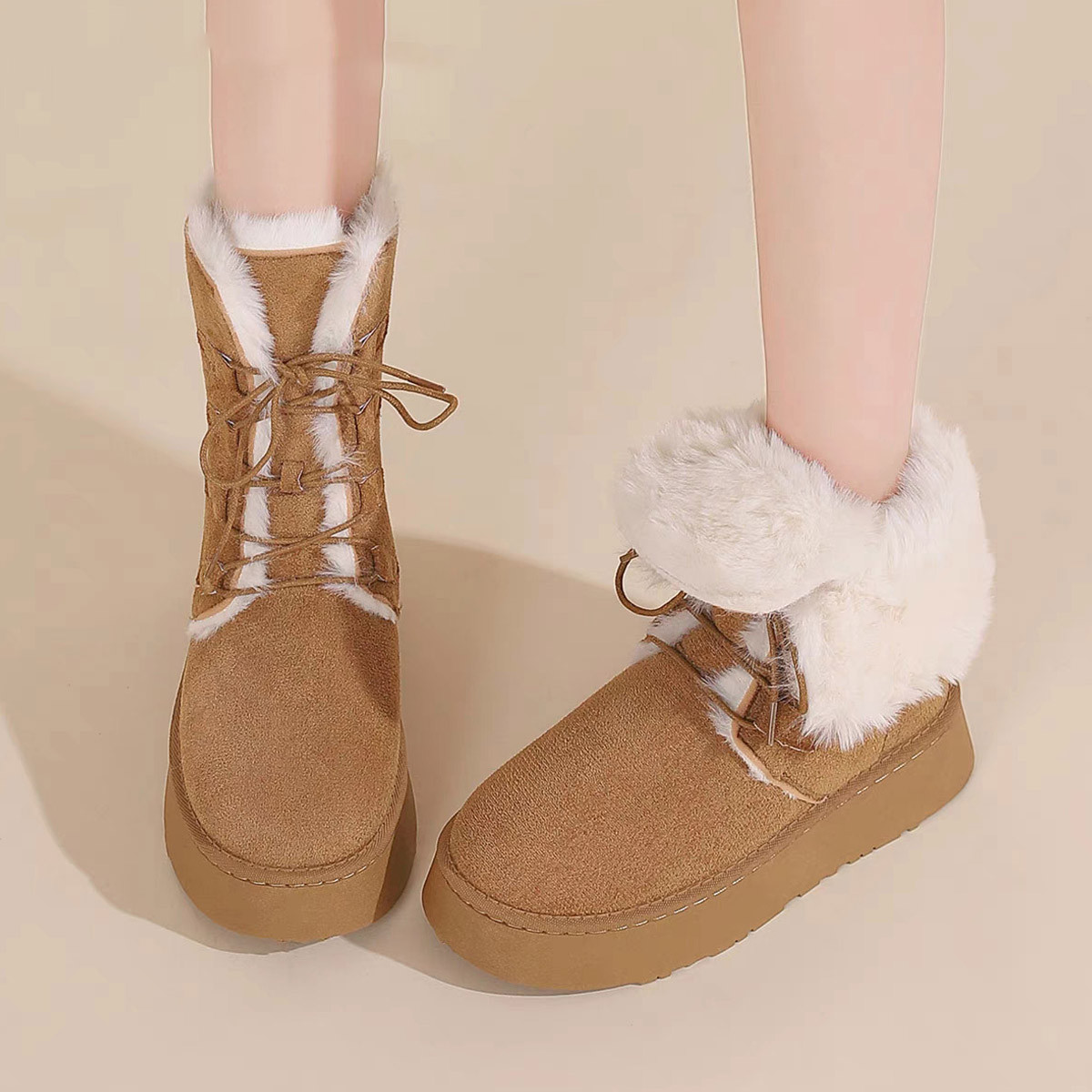 【加绒保暖】雪地靴女款潮流冬季靴子女加绒加厚百搭高帮棉鞋子女 400389