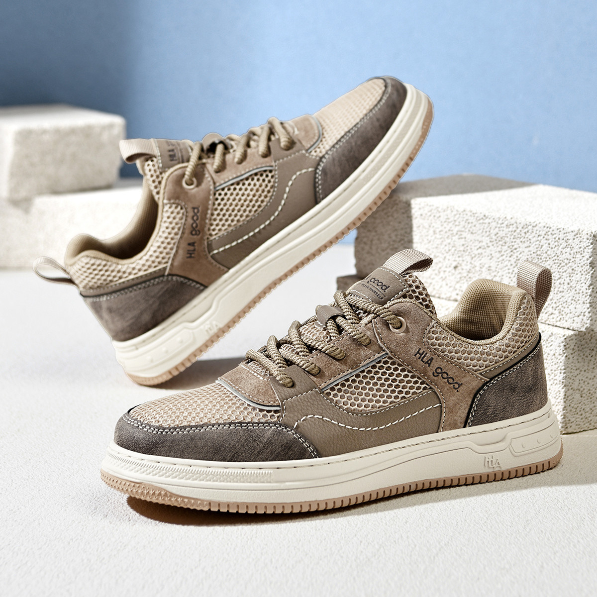 【网面透气】25夏季款男鞋拼色百搭板鞋男厚底镂空网布小白鞋男 782100
