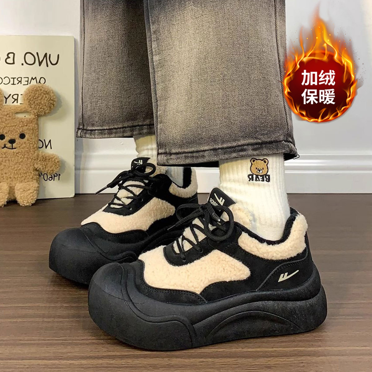 【冬季热卖】加绒保暖棉鞋时尚潮流学院风鞋子女款百搭厚底女鞋 304221