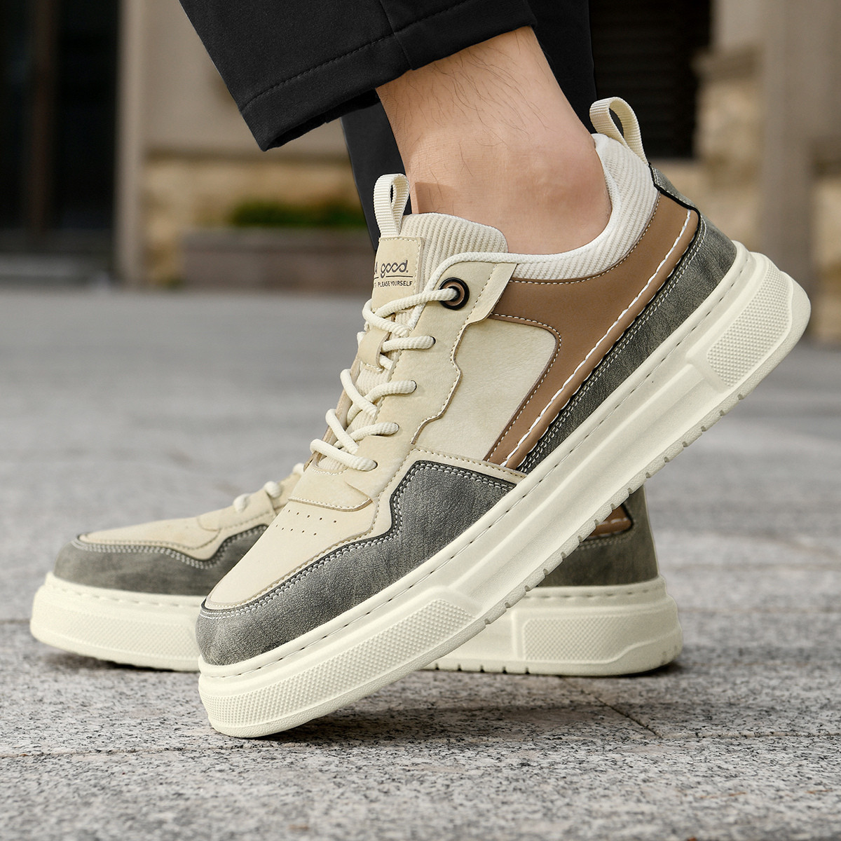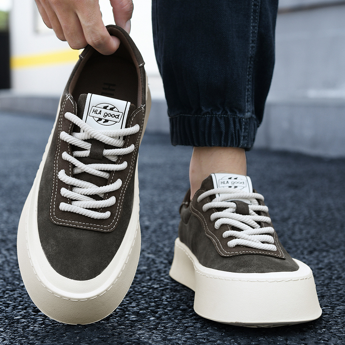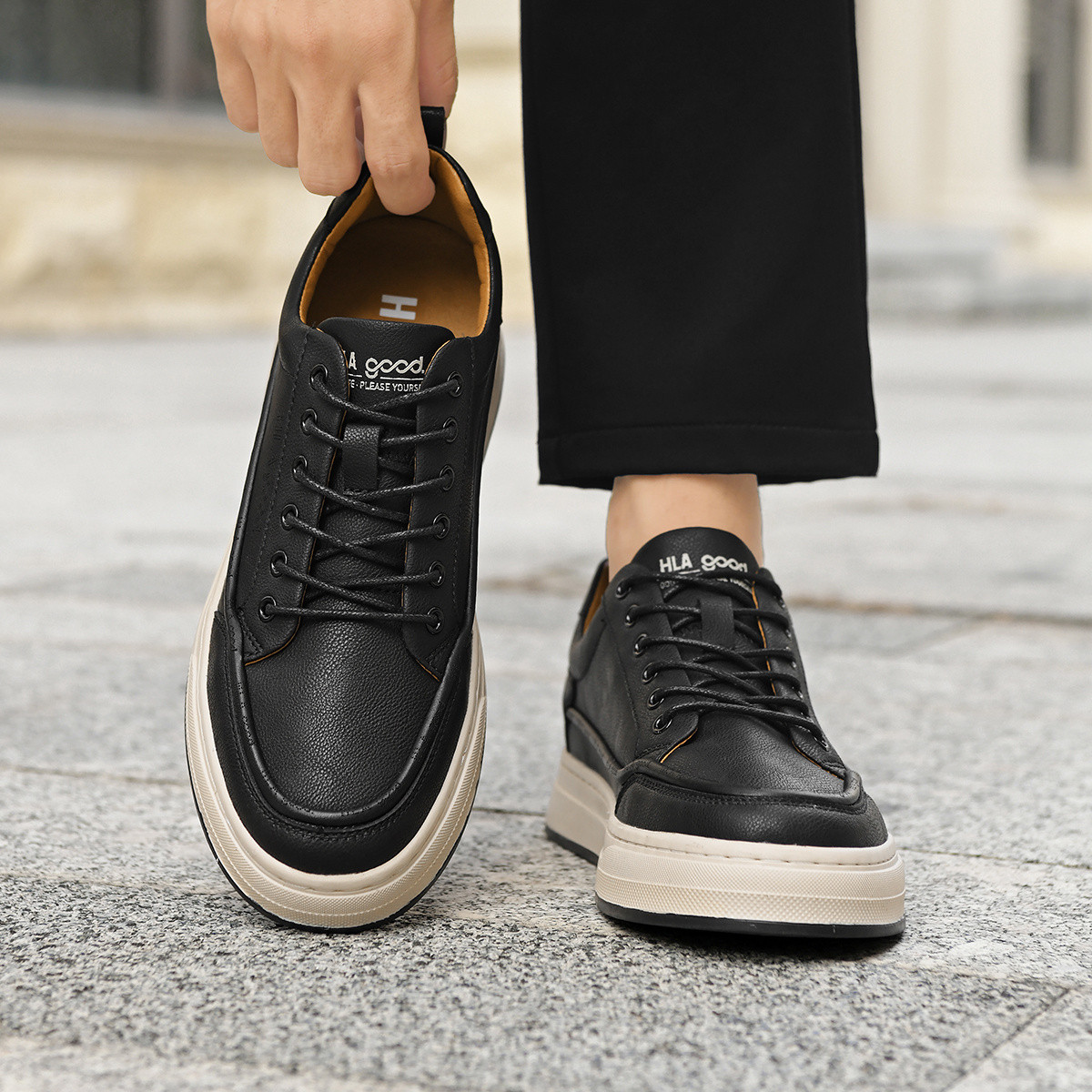 运动鞋经典纯色百搭板鞋厚底潮流皮面休闲运动鞋男鞋 026767