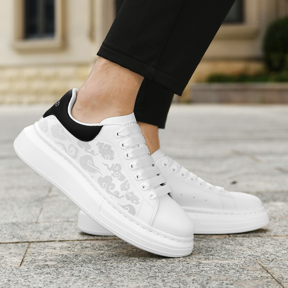 【网面透气】25夏季款男鞋拼色百搭板鞋男厚底镂空网布小白鞋男 782100
