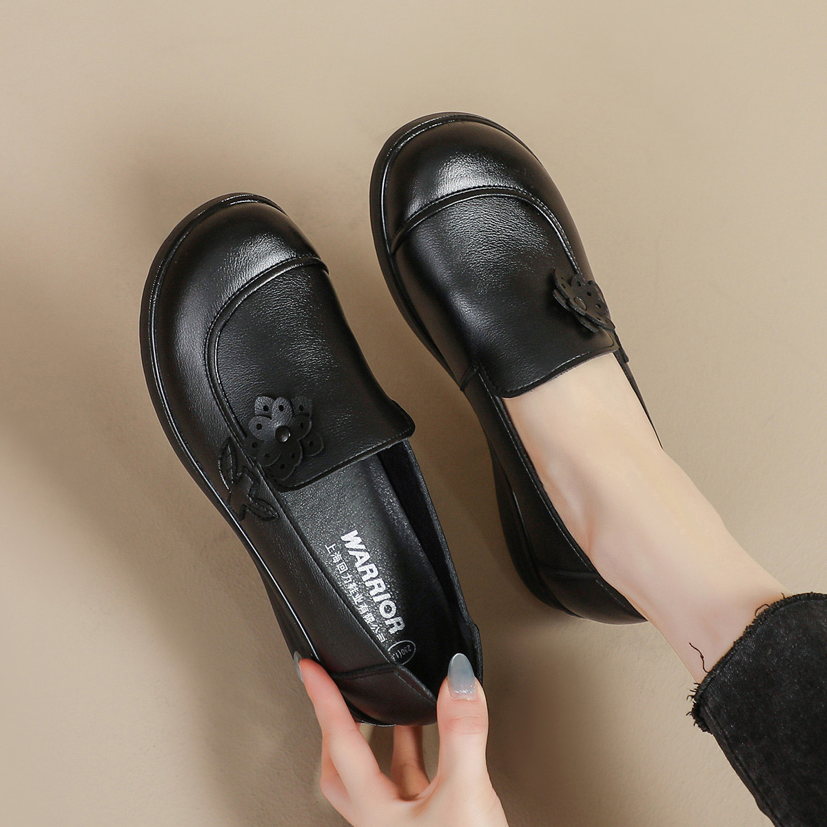 【软底舒适】春夏休闲皮鞋女鞋妈妈鞋耐磨一脚蹬浅口女单鞋 615376