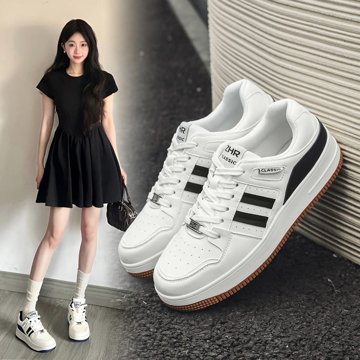 【情侣款】撞色拼接男女款厚底鞋休闲鞋春秋款小白鞋百搭鞋子女鞋 852928
