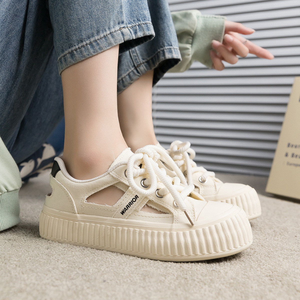 【镂空帆布鞋】25夏季款女鞋厚底增高板鞋女舒适百搭休闲鞋女 481620