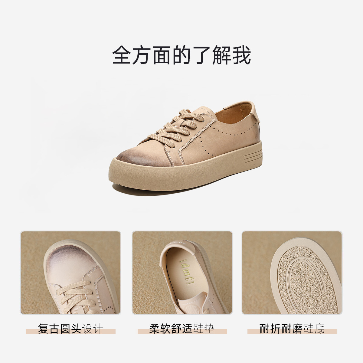 春夏简约百搭软面舒适复古圆头纯色系带女休闲鞋 556737
