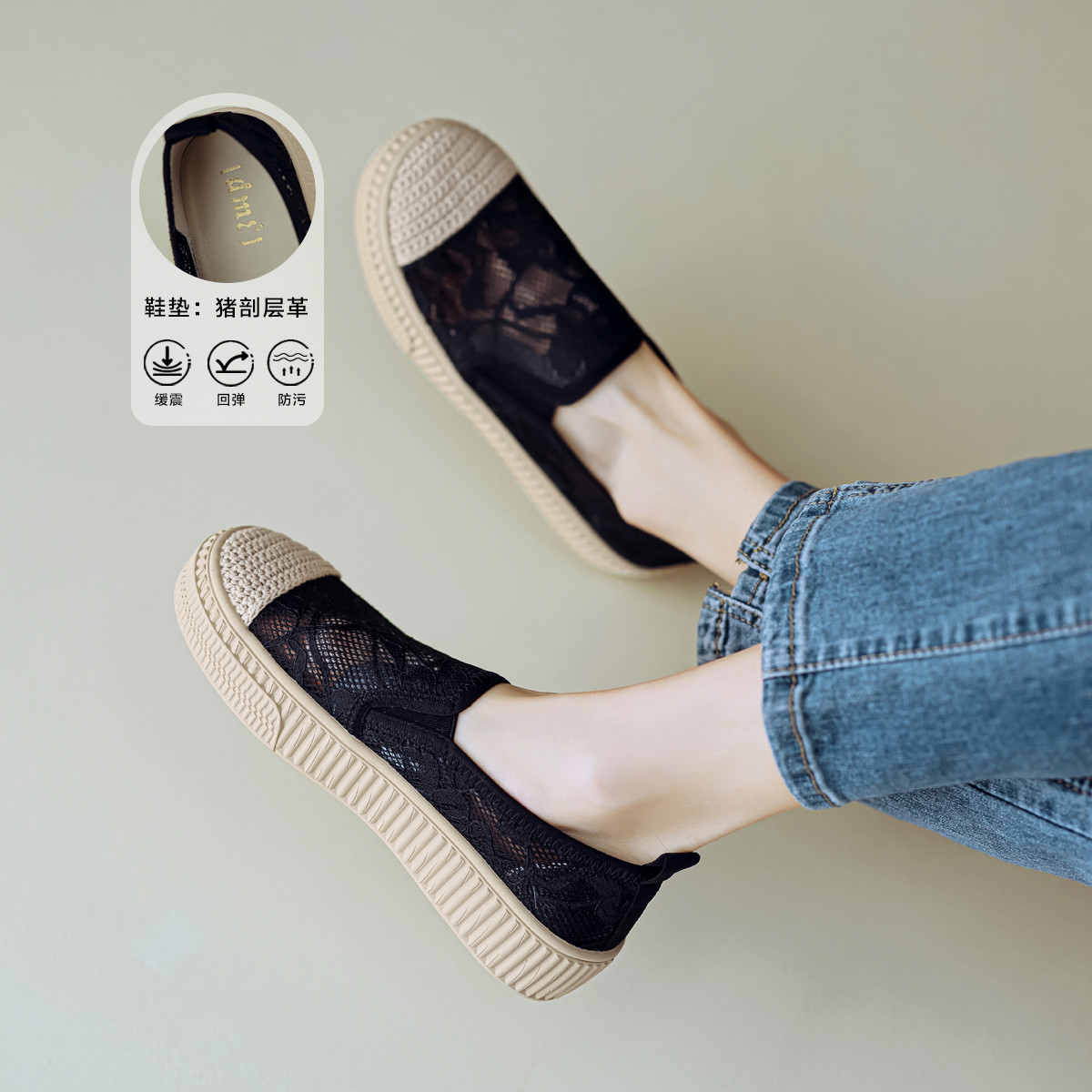 春夏时尚百搭舒适透气花朵网面休闲渔夫鞋一脚蹬 681985