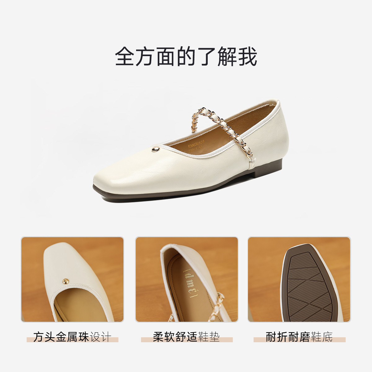 春季时尚简约百搭链条金属珠装饰方头低跟女单鞋 335809