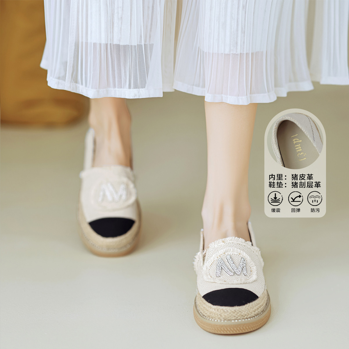 春夏时尚百搭舒适透气撞色流苏烫钻渔夫鞋一脚蹬 900673