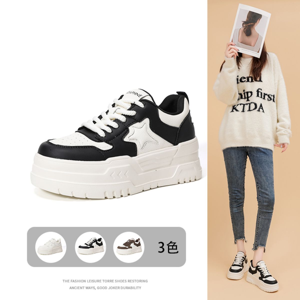 【休闲女鞋】春夏厚底鞋女小白鞋小众板鞋运动鞋 336343