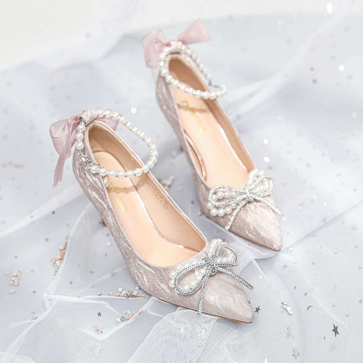 【珍珠水钻】仙气闪闪婚鞋伴娘鞋细跟气质时装鞋秀禾鞋高跟鞋女鞋 177664