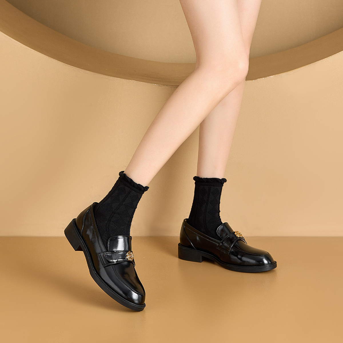 【幸运金币】春季乐福鞋女套脚小皮鞋职场气质女单鞋通勤鞋女鞋 424730