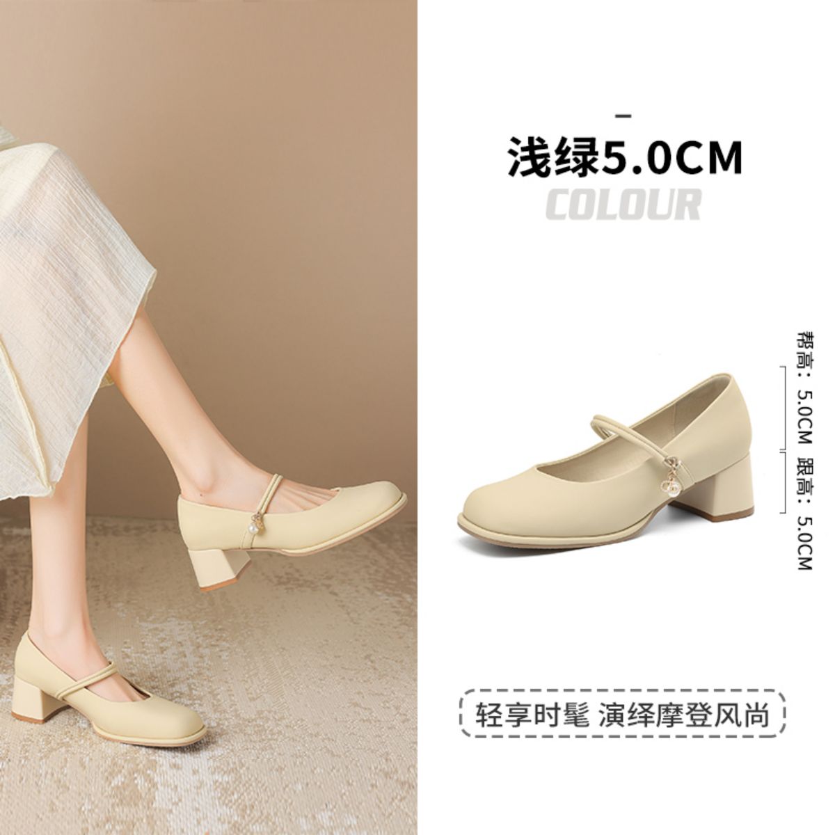 法式玛丽珍鞋通勤单鞋女粗跟简约舒适温柔晚晚鞋奶奶鞋 117978
