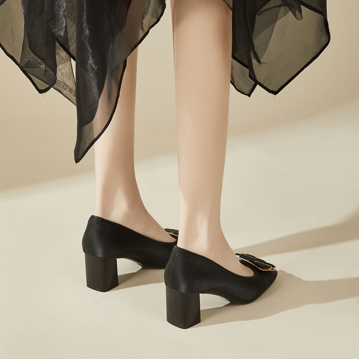 法式气质性感OL单鞋女2025新款名媛风方头粗跟不累脚高跟鞋 860247