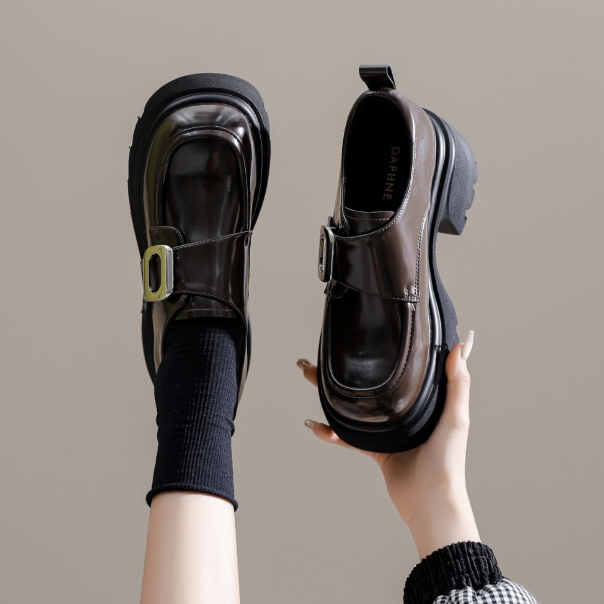 春秋季乐福鞋学院亮面松糕厚底金属搭扣英伦风复古单鞋女 723738