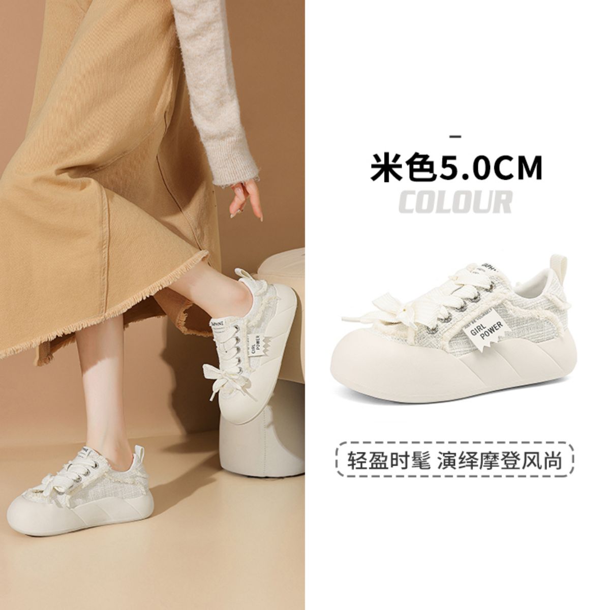 夏季百搭面包鞋女舒适厚底鞋小个子增高板鞋休闲运动鞋小香风女鞋 293655