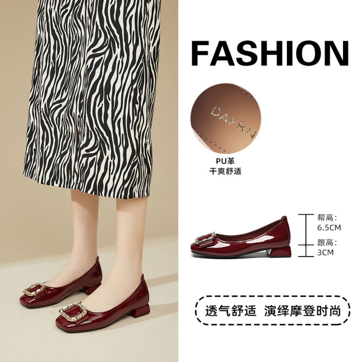 【水晶方扣】夏季舒适婚鞋女款通勤鞋方头女单鞋妈妈鞋低跟女鞋 083031
