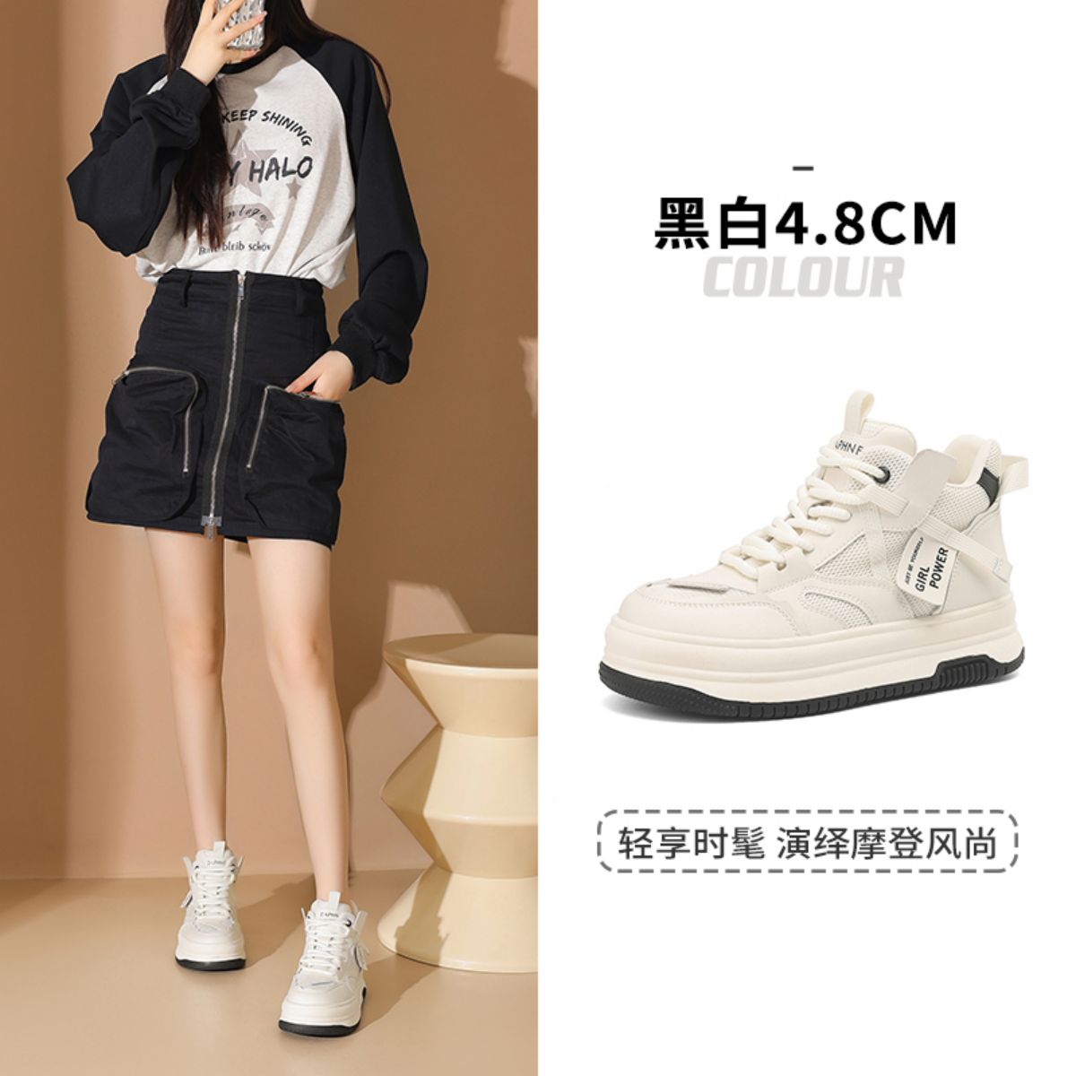 高帮板鞋女夏季百搭简约风小白鞋女轻便透气休闲运动鞋时尚厚底鞋 918743