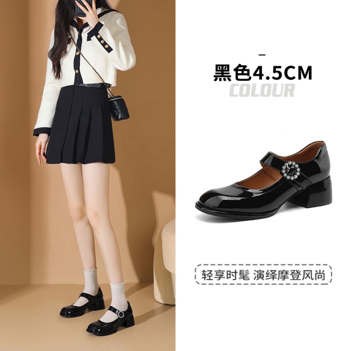 夏季玛丽珍鞋女气质高跟鞋乐福鞋浅口百搭职场通勤鞋单鞋JK鞋 436375