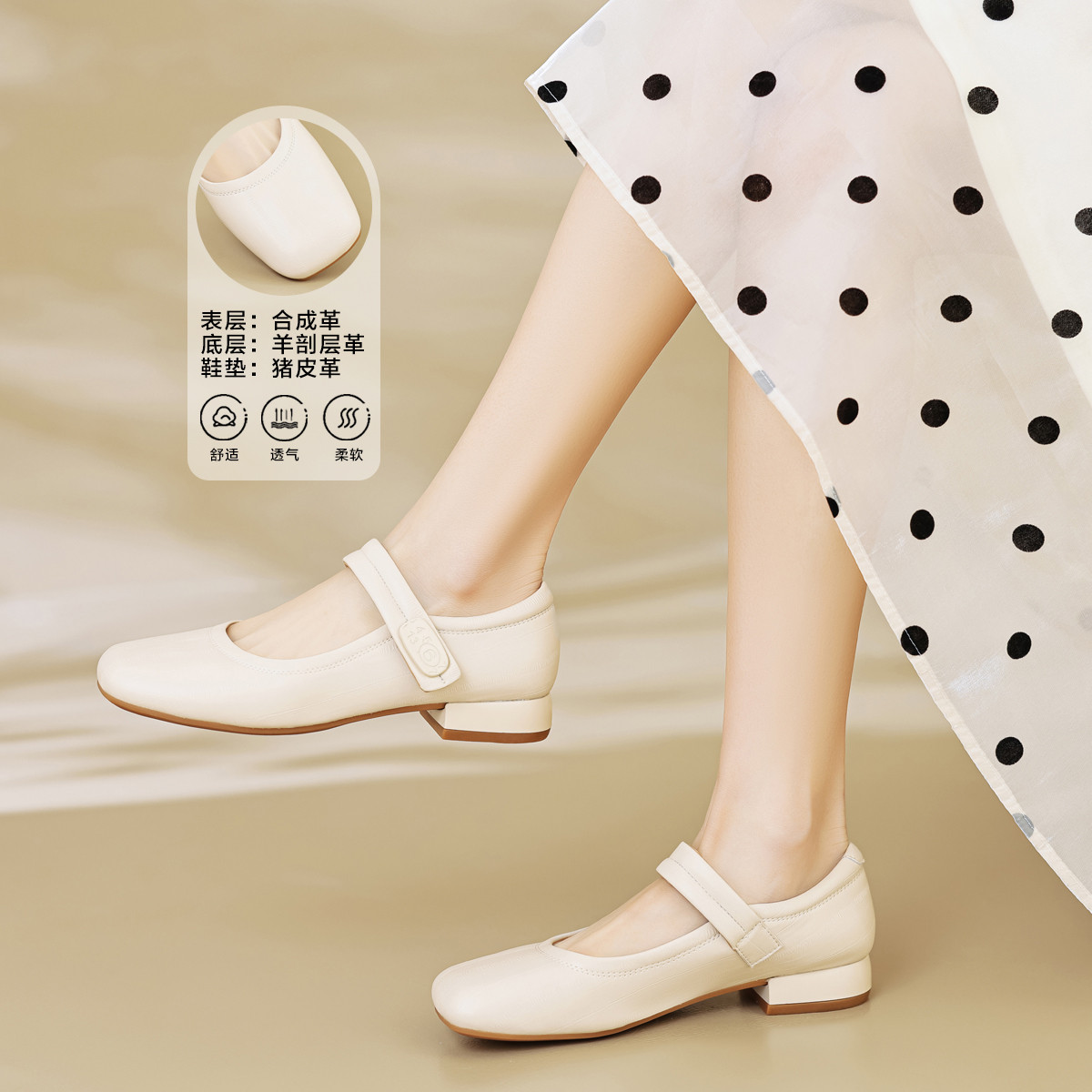 春季时尚简约舒适百搭方头压花玛丽珍鞋女单鞋 567105
