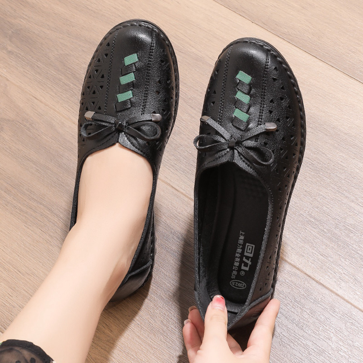 【镂空透气】25夏季大码妈妈鞋皮面乐福鞋中老年女士软底通勤鞋 035348