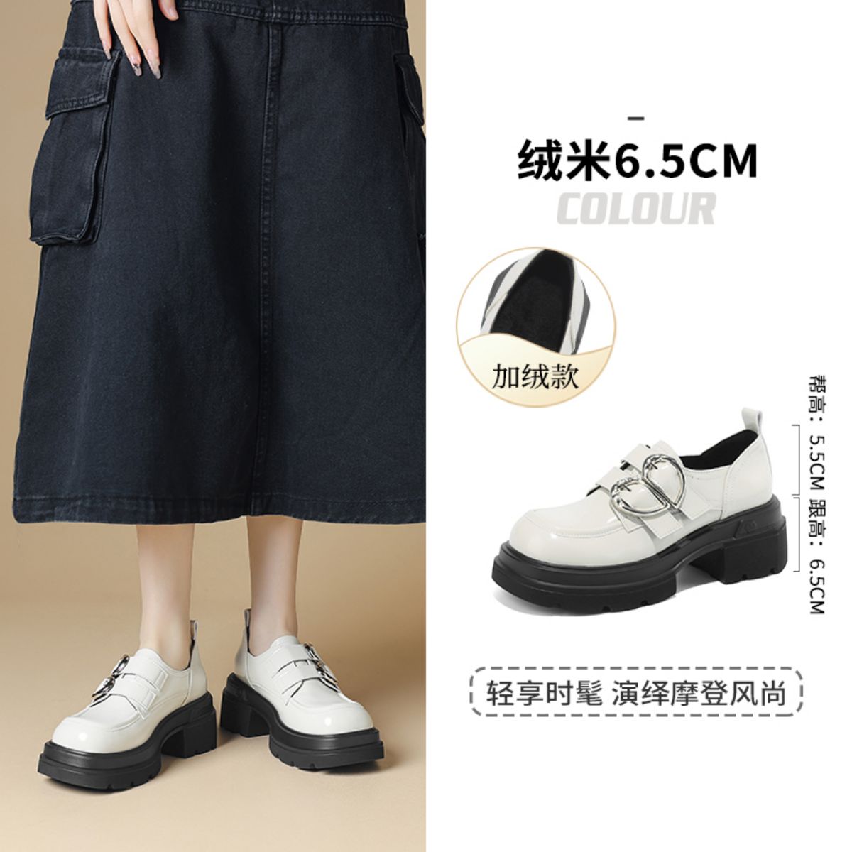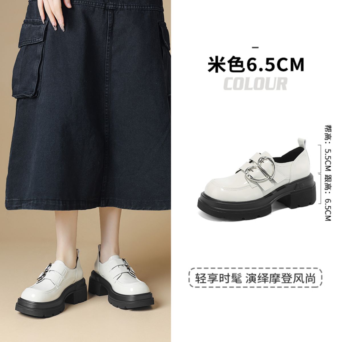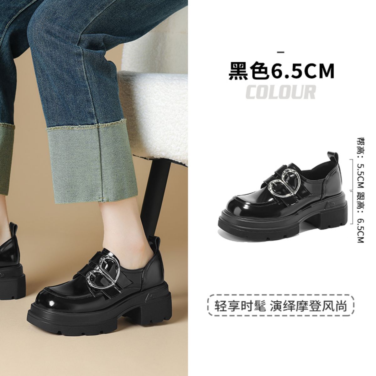 夏季款时尚厚底粗跟女单鞋百搭乐福鞋JK制服鞋饰扣单鞋女通勤鞋 676119